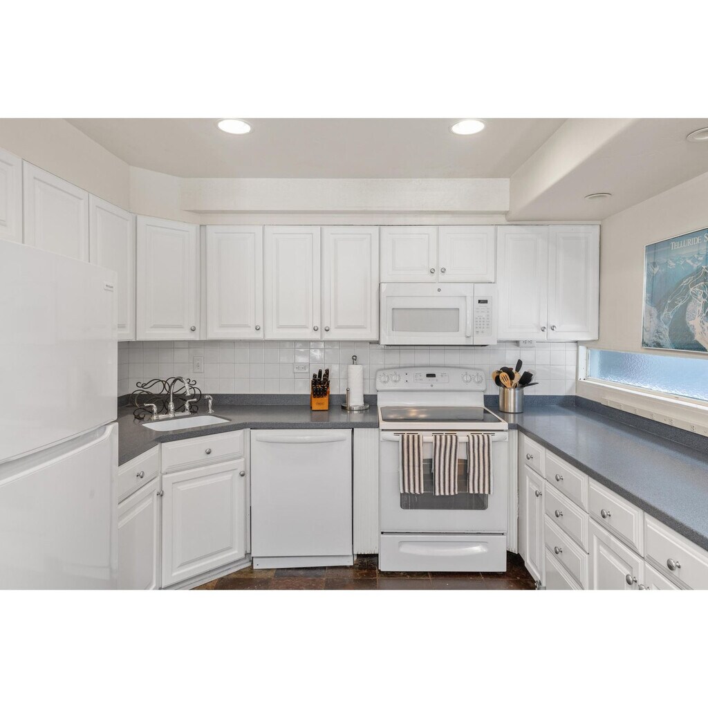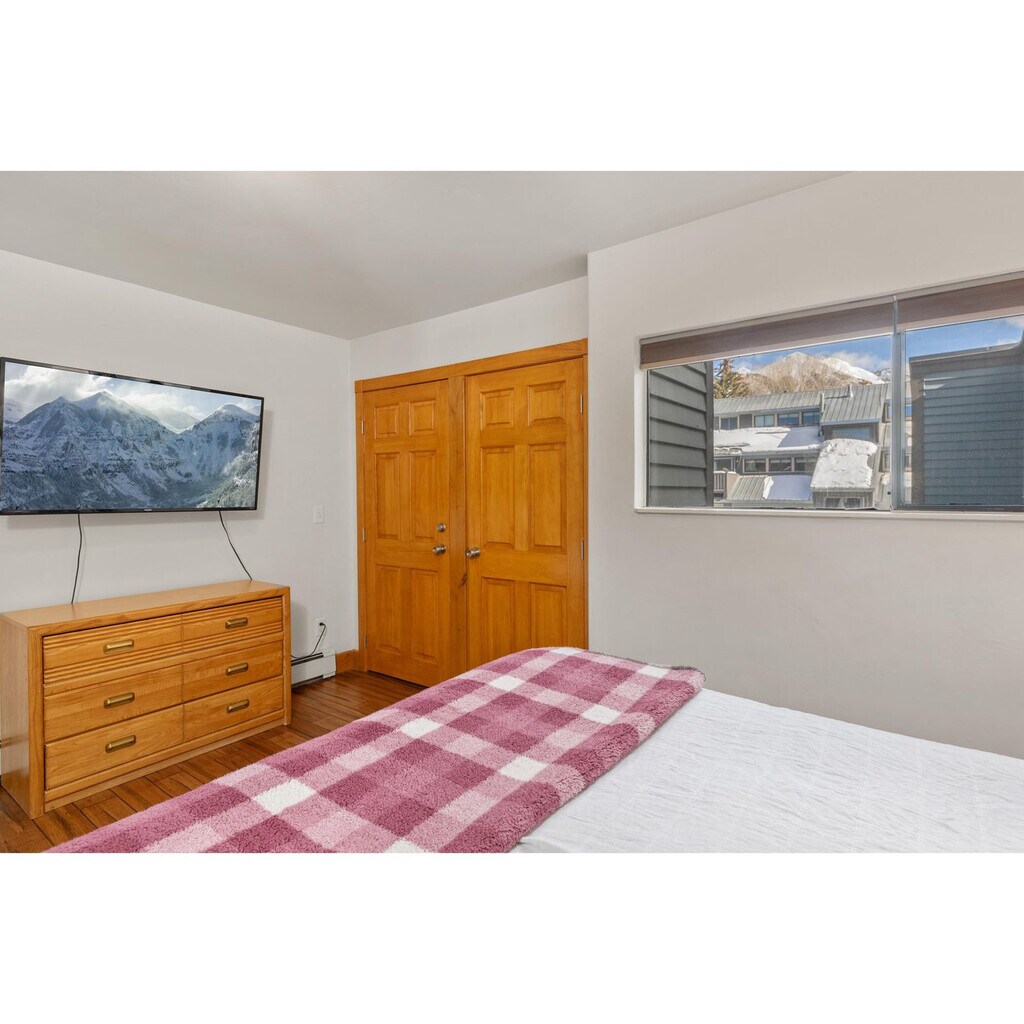 Feel at home in Telluride Lodge 338, a spacious three-level condo located directly across from Lift 7 (Coonskin Lift). This 3-bedroom, 3-bathroom condo sleeps 8 and offers mountain views and a cozy fireplace. This home features a fully equipped kitchen, a flat-screen TV with streaming apps, a Sonos Era 100, a mud room, ski racks in the entrance, a washer and dryer, and private Wi-Fi. The en suite bathroom includes a jetted tub/shower combo. Lather luxury shampoo, conditioner, body wash, and body lotion are provided, along with starter supplies of Charmin or 7th Gen TP, paper towels, Kleenex, dish soap, dishwasher pods, a blue sponge, extra-large and small trash bags, laundry detergent pods, and dryer sheets. Fees apply for restocking. Free on-site parking is available for 1 vehicle, with additional paid parking available off-site. Guests have access to two common hot tubs (one interior, one exterior) and a steam sauna. Located in the heart of Telluride, you’ll enjoy walk-to-ski convenience plus easy access to Clark’s Market, the Palm Theater (Film Festival venue), and the scenic San Miguel River Trail. The free Galloping Goose shuttle also stops nearby, making it effortless to get around town. This multi-level home has stairs and may not be suitable for guests with mobility challenges. Registration Number: 544 [SI]