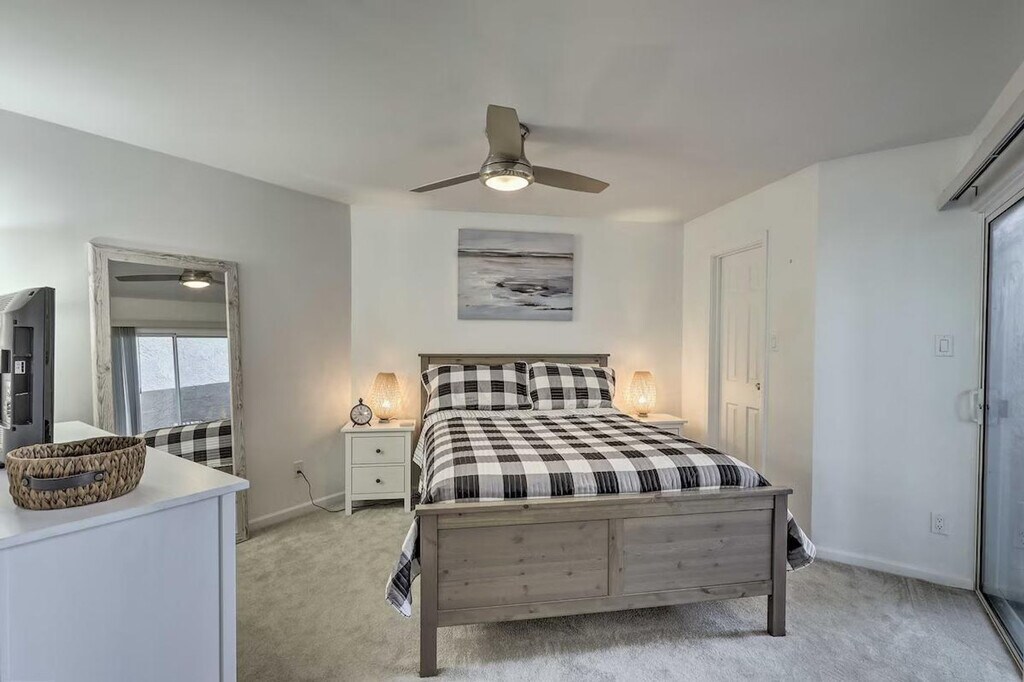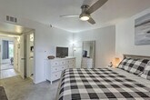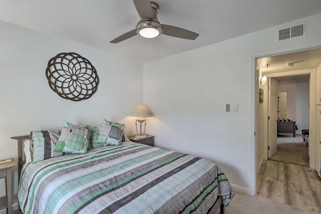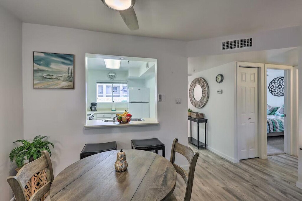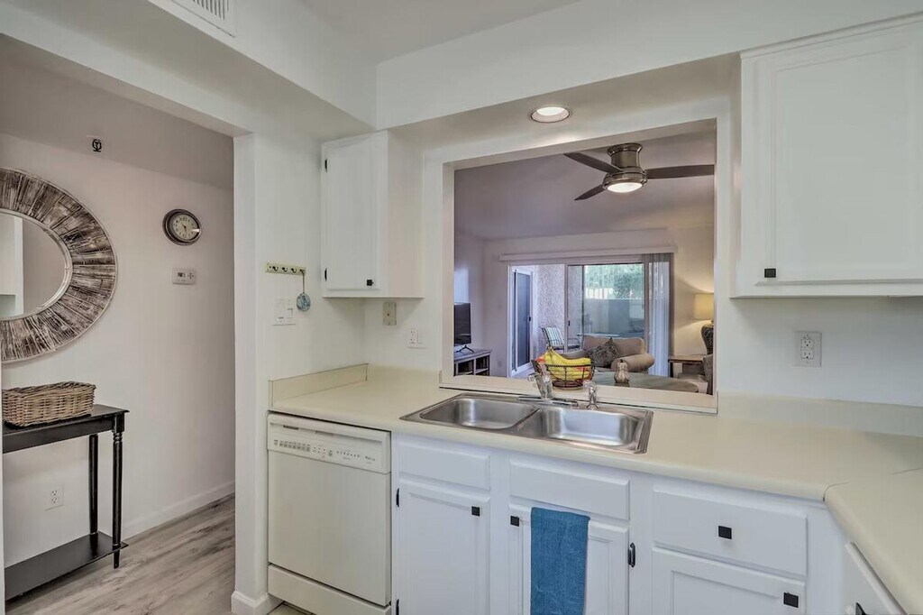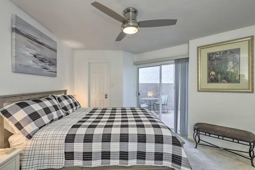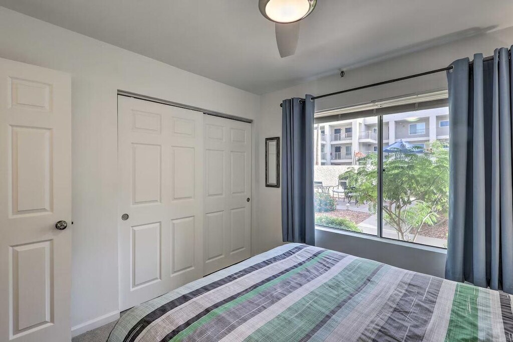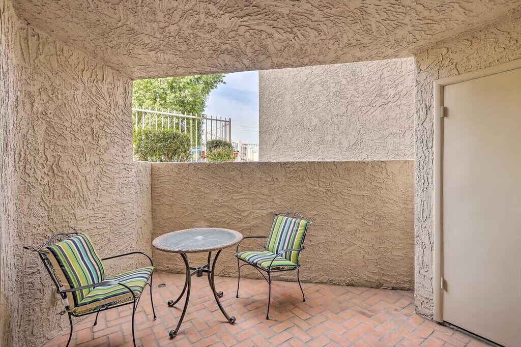 Experience the best of Scottsdale from this quaint ground-floor 2-bedroom, 2-bathroom condo. Feel at home in this centrally located condo that offers step-free access. This remote work-friendly condo offers all the essentials, including a fully equipped kitchen with a drip coffee maker, dishware, flatware, spices, toaster, and fridge with ice maker. Enjoy the smart TV, dining table, ceiling fans, breakfast bar, hardwood flooring, patio with seating, washer and dryer, towels, linens, and complimentary toiletries. Enjoy access to community amenities like a pool, hot tub, grilling area, and courtyard. Covered parking is available for one vehicle, and parking lot space is available for two vehicles. Perfect for the traveling professional, this condo offers a prime location near all of Scottsdale and Phoenix's attractions. No pets are allowed. No events, parties, or large gatherings are permitted. Additional fees and taxes may apply. A photo ID may be required upon check-in. [SI]
