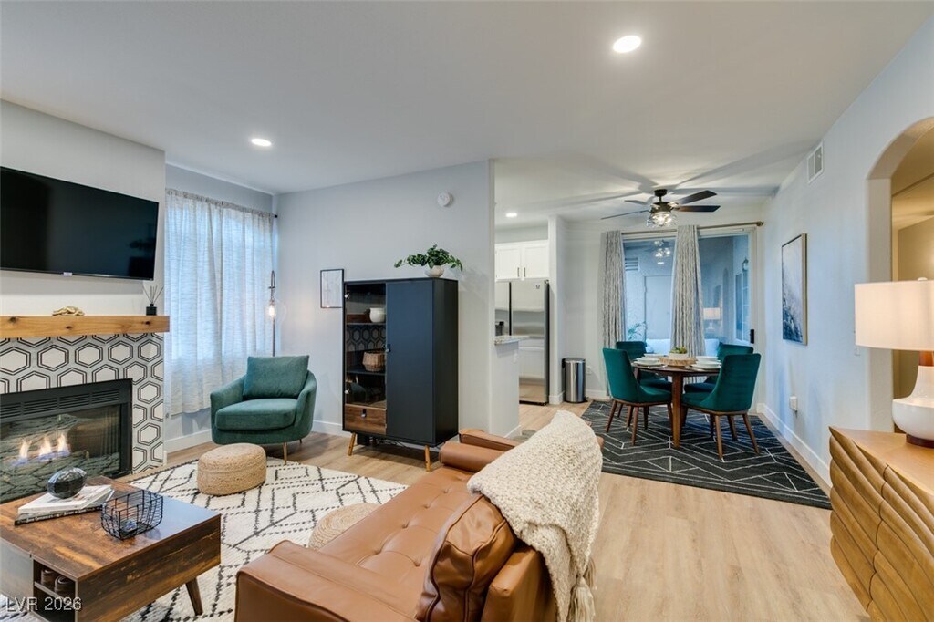 Beautiful 3-bedroom condo with private garage located in a gated community offering resort-style amenities. The open-concept layout features a well-appointed kitchen with stainless steel appliances, granite countertops, and ample cabinet space—ideal for both daily living and entertaining. The spacious family room showcases a stunning stone fireplace, creating a warm and inviting atmosphere. Step out onto the private balcony and enjoy peaceful mountain views, perfect for relaxing mornings or evening sunsets. Generously sized bedrooms offer flexibility for guests or a home office. Community amenities include a sparkling pool and spa, as well as a fully equipped weight room. Conveniently located near shopping, dining, and outdoor recreation. Comfort, security, and lifestyle come together in this must-see home.