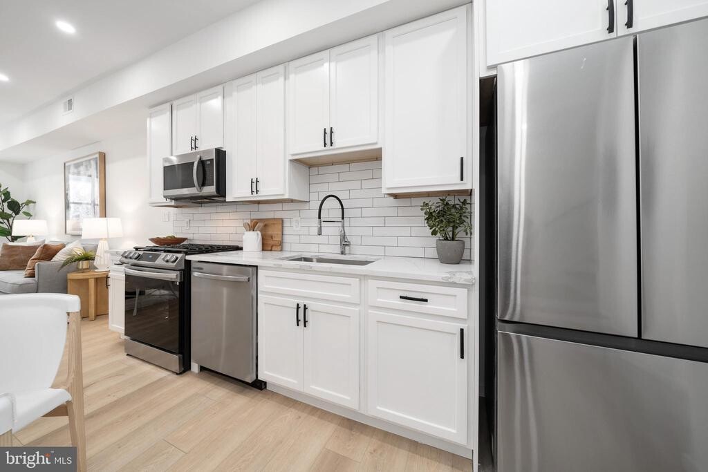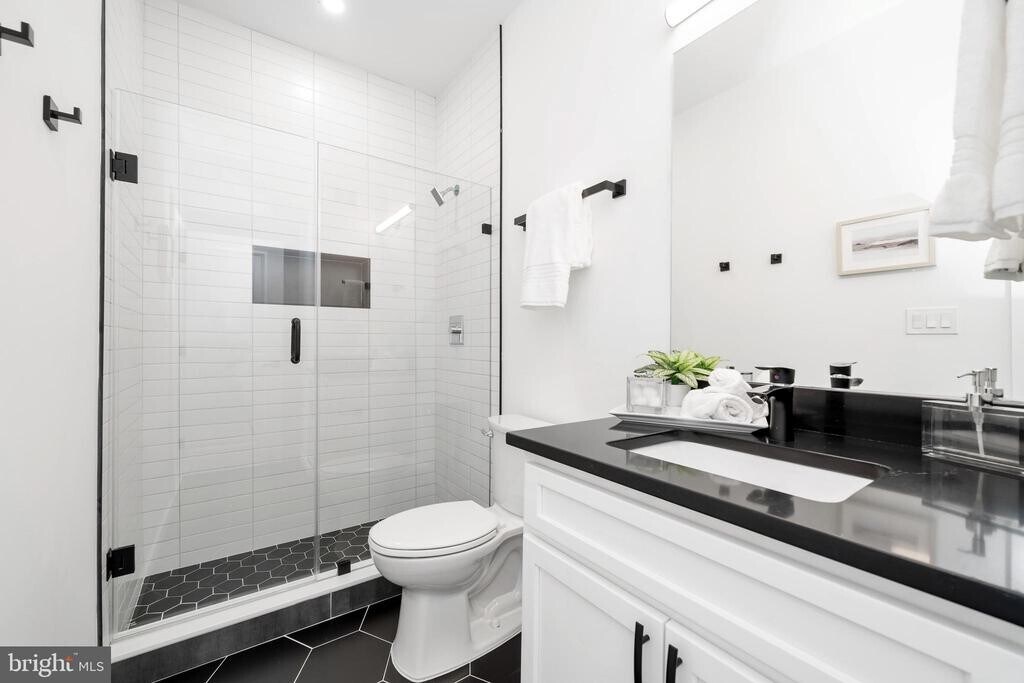 Experience modern city living in this sleek two-level apartment featuring a private rooftop terrace and high-end contemporary finishes throughout. Flooded with natural light, this residence showcases light wood plank flooring on both levels and an open-concept main living area designed for both style and function. The modern kitchen offers crisp white cabinetry, stainless steel appliances, and a clean, minimalist aesthetic. Each bathroom features striking black-and-white tile showers that add a bold designer touch. Upstairs, the private rooftop terrace provides an exceptional outdoor retreat—perfect for relaxing, entertaining, or taking in sunset views. Located in the heart of Kingman Park, this home offers outstanding convenience. Enjoy easy access to H Street, known for its vibrant dining, cafés, nightlife, and entertainment. The nearby trolley line and multiple bus routes make commuting simple, while neighborhood parks, the Anacostia Riverwalk Trail, and recreational amenities are just minutes away. Capitol Hill, Union Market, Eastern Market, and major commuter routes are all within close reach. A modern, beautifully designed home in a dynamic and well-connected DC neighborhood—don’t miss this exceptional opportunity.