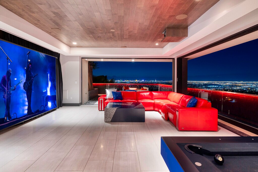 Welcome to an unparalleled fully furnished private oasis in MacDonald Highlands' guard-gated community. This luxurious residence redefines opulence, offering privacy, sophistication, and entertainment. With three security gates, this exclusive enclave ensures peace of mind. A masterpiece rests on a 2.2-acre estate, designed for discerning connoisseurs. Inside, panoramic Strip views greet you through vast windows, enhancing the grandeur. An indoor basketball court, private bowling alley, and gym cater to recreation and fitness. Outdoors, a pool, spa, patios, and fire pits provide relaxation. The chef's kitchen, guest house, bars, tennis court, and theater room transform this estate into a private resort. With over 15,000 sq ft, 7 bedrooms, and 11 baths, it epitomizes luxury. Meticulous details exceed expectations, presenting the pinnacle of modern living where vistas, amenities, and exclusivity converge.