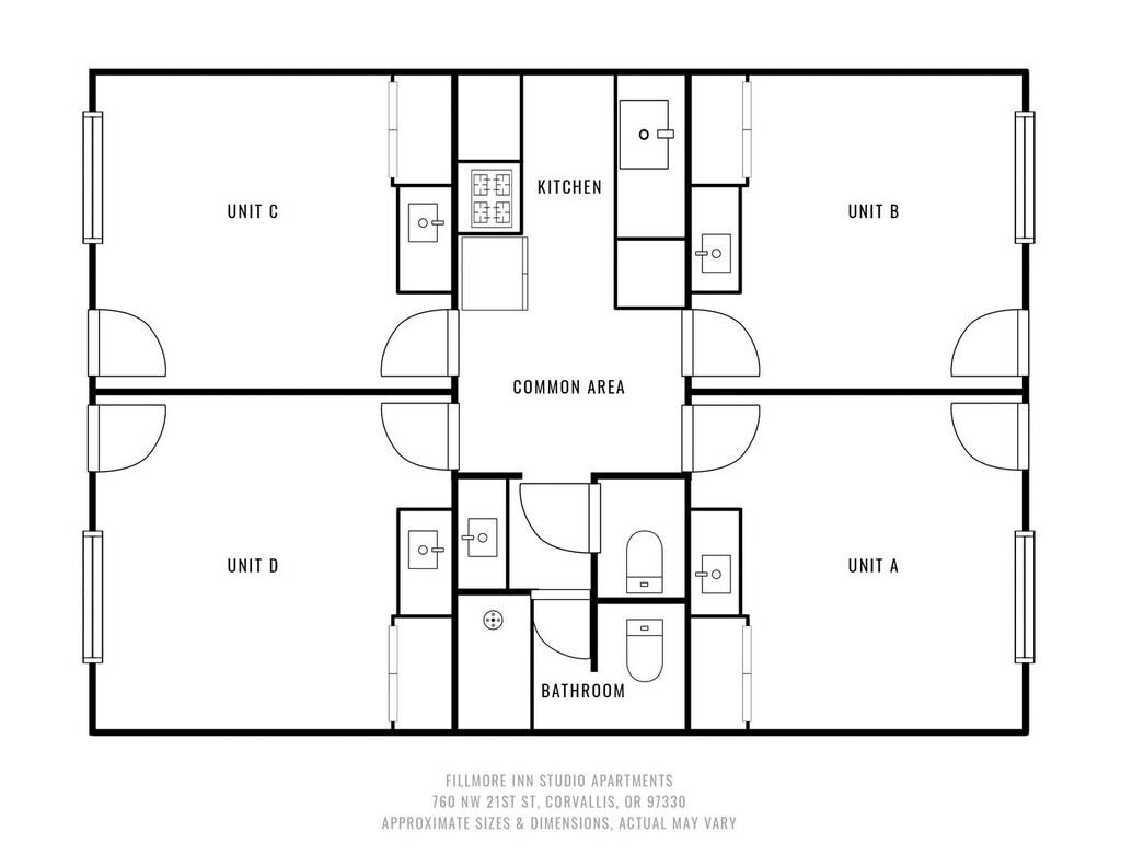*Valentine's Day Special: Get 4-Weeks of Free Rent on a 12-month lease if you apply by February 16th.* STUDIO STYLE LIVING.. SHARED COMMON SPACE.. MINUTES TO CAMPUS.. AND YOUR OWN SEPARATE ENTRANCE!! PROPERTY ADDRESS: 760 NW 21st Street Corvallis OR 97340 COUNTY: Benton County COMMUNITY: The Fillmore Apartments BEDROOMS: 1 BATHROOMS: 2 (shared) RENT: $695 DEPOSIT: $250 up to one month's rent LEASE TERMS: 12 Month+SCREENING CHARGE: $55 per adult (A separate check is required for screening charges) Fillmore Inn features private studios just a stone’s throw from Fred Meyer, bus stops, restaurants, parks & more. This purposefully designed building is unique with private bedrooms equipped with private vanities and private entrances. Each home features shared kitchen & bathroom. Well maintained, professionally managed & clean throughout. Ask us about our flexible lease terms!! Building Features: * Private Entrances * Monitored On-Site Laundry Facilities * Bike Storage * Bike Repair Station (Coming Soon) * On-Site Leasing Office Apartment Home Features: * Stainless-Steel Kitchen Appliances (On Select Units) * Private Entrance * Vanity in each bedroom * Shared Bathroom space * Shared Kitchen space Community Amenities: * Walking distance to Oregon State University * Many Public Transit Options * Beautiful Parks Abound * Bike & Walking Trails * One Block away from Fred Meyers * Casual & Fine Dining Options * Near Downtown Corvallis Check out our 3D virtual tour by clicking here: HEAT: Electric APPLIANCES: Stove, Refrigerator & Dishwasher AMENITIES: Parking Available, On-site Laundry Facility & Bike Repair Station (Coming soon) UTILITIES INCLUDED IN RENT: None PET POLICY: No Pets DEPOSIT: $250 SPECIAL TERMS: No Smoking. Renter's Insurance is Required at the time of Move-In with a minimum $100,000 in Liability Protection. INFORMATION IS DEEMED RELIABLE BUT IS NOT GUARANTEED
