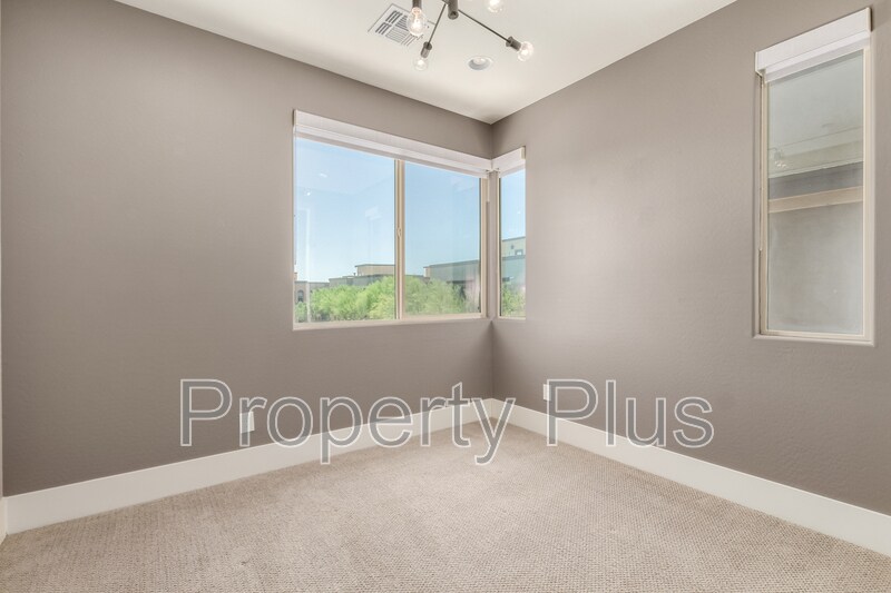 Discover the epitome of modern elegance in this highly upgraded, three-bedroom home nestled within the exclusive gated community of Pinnacle at Silverstone. Designed for both comfort and sophistication, this home boasts an open, light-filled layout with impeccable attention to detail. The chefs kitchen is a showstopper, featuring a spacious island and breakfast bar, sleek granite countertops, premium upgraded cabinetry, and top-of-the-line stainless steel appliances all complemented by a large pantry. Upstairs, a versatile open loft leads to two beautifully appointed guest bedrooms, a convenient laundry room, and a grand owners suite with a spa shower and dual vanities. The main living area is designed for seamless indoor-outdoor living, highlighted by 15-foot multi-slide glass doors that open onto a serene, shaded backyard patio perfect for relaxing or entertaining. And the crown jewel? A private rooftop deck with breathtaking mountain views and unforgettable Arizona sunsets. This is more than a home...its a Scottsdale lifestyle at its finest. Dont miss this rare opportunity! $50 app fee per individual $250 set up fee.
