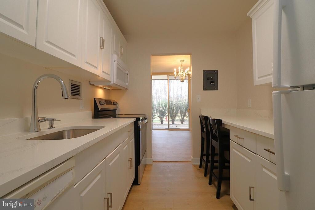 Welcome to 7505 Democracy Blvd #A-125, a renovated 2-bedroom, 1-bathroom condo in the desirable Lakeside Terrace community. This inviting home offers modern comfort, stylish finishes, and unbeatable convenience all in one of Bethesda’s most sought-after locations. Step inside to find a bright and spacious open layout featuring new flooring, fresh paint, recessed lighting, and a sleek, updated kitchen with quartz countertops, and contemporary cabinetry. Two large sliding glass doors flood the living area with natural light and open to a private patio, perfect for outdoor relaxation and entertaining. The bathroom offers a double-sink vanity and a glass-enclosed shower for a clean, modern look. Enjoy the convenience of a dedicated parking space, separate storage room, and on-site laundry in a secure, elevator building. **ALL UTILITIES** - electric, gas, water, sewer, heat, and air conditioning—are included in the rent, making budgeting simple and predictable. Lakeside Terrace residents enjoy access to community amenities including a swimming pool, tennis courts, and scenic walking paths around the lake. Just minutes from Westfield Montgomery Mall, Cabin John Park, Shopping, Dining, and I-270/I-495, this location offers effortless access to everything Bethesda has to offer.
