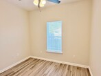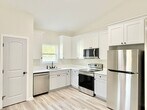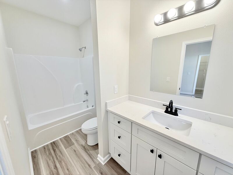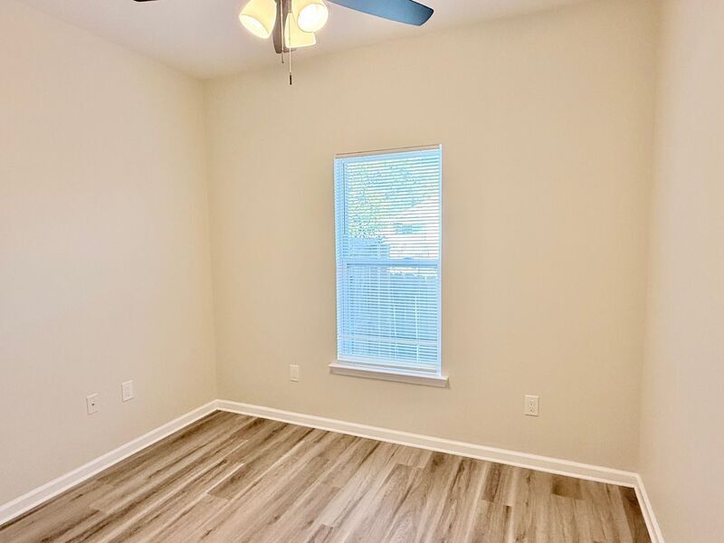 View In 3D: Welcome to this quaint 2-bedroom, 2-bath duplex offering 900 square feet of thoughtfully designed living space with an open-concept layout and luxury vinyl plank flooring throughout. The beautiful modern kitchen features ample white cabinetry, stone countertops, a deep-basin undermount sink, and stainless steel appliances, including a refrigerator, flat-top range/oven, built-in microwave, and dishwasher. Both bedrooms include ceiling fans and closets for comfortable, convenient living. The primary bathroom features a single stone vanity with a tub/shower combo, while the second bathroom offers a single stone vanity and a walk-in shower. Additional highlights include covered front and back porches, a fully-fenced backyard, and a laundry room with storage cabinets and space for a full-size washer and dryer.