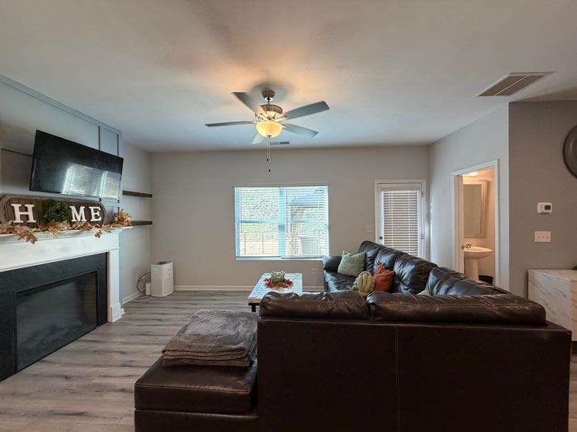 AVAILABLE FOR MOVE-IN ON FEBRUARY 15th! Beautiful townhouse located in a quiet, newer construction community. Inside, the open-concept main level showcases LVP flooring, a half bathroom, a spacious kitchen with a large island that comfortably seats 4 bar stools, granite countertops, and stainless steel appliances. The second floor offers an elegant, open layout with a spacious feel and sightlines to all rooms as you reach the top of the stairs. The primary bedroom overlooks the back patio and includes a luxurious en-suite bathroom with a walk-in closet, double vanity, over-sized stand-up shower with built-in shelving, and a water closet.This home features a 2-car garage and INCLUDES a WASHER and DRYER on the upper level for added convenience. Enjoy outdoor living on the private back patio, complete with outdoor furniture and a canopy. Conveniently located near I-20 for easy commuting, this home combines comfort, style, and accessibility all while offering resort-style amenities, including a pool, playground, and tennis court. Home is currently occupied. Please book tours with 24-hour notice Qualifications are as follows: Applicants must gross 3x the monthly rent ($7,950+). Must have VERIFIABLE INCOME. Bankruptcies, car repossessions or collections in the last 24 months may require a higher security deposit. $75 application fee. All occupants over 18 years of age must complete an application. Professionally managed. No smoking, subletting or short-term/corporate leasing. Tenant pays all utilities. Pets allowed with $400 non-refundable pet fee. Minimum one-year lease. **There is no minimum credit score requirement**