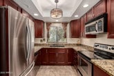 Fully furnished 2 bedroom and 2 bath condo in the gated Sienna Subdivision. 1 st Floor unit,Kitchen with Stainless Steel appliances and Quartz counters,Washer and Dryer in unit,Large Covered Patio to relax,2 pools (1 is heated during the winter months),and Spa,Fitness Room,Clubhouse,and a Tennis Court ''can also be used for Pickle Ball''. Walking distances to many restaurants,walking path,McCormick Stillman Railroad Park,Silverado Golf Club,McCormick Ranch Golf Course and much more! Assigned covered parking space is just steps away. New A/C in unit in 2023. Dog Friendly!
