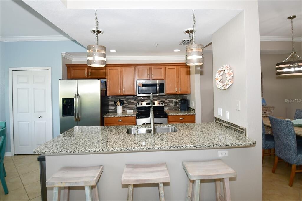 Welcome to your dream oasis – a stunning 2-bedroom,2-bathroom furnished condo located within the highly sought after and secure guard-gated community of a 27-hole Arthur Hills designed golf course. This immaculate condo has been thoughtfully updated throughout,promising a life of luxury and comfort. Step inside,and you'll immediately be captivated by the elegant ambiance created by the tasteful furnishings and modern finishes. The heart of this condo is the impressive kitchen,complete with gorgeous granite countertops and a convenient breakfast bar,perfect for enjoying casual meals or entertaining guests. Adjacent to the kitchen,a charming breakfast area awaits,ideal for savoring your morning coffee while overlooking the picturesque surroundings. For more formal gatherings,a spacious dining room provides an intimate setting to share meals with loved ones or host special occasions. The family room,bathed in natural light,offers a relaxing space to unwind and create lasting memories. One of the highlights of this condo is the screened lanai,where you can bask in the beauty of nature and enjoy the scenic views of the 7th hole of the pristine golf course. The lanai is an excellent spot to sip on a refreshing drink,read a book,or simply embrace the tranquility of the outdoors. Within the community,indulge in resort-style living with access to a dazzling pool,a true oasis on sunny days. Whether you seek to lounge poolside with a good book or take a refreshing dip,this pool area is designed for relaxation and enjoyment. Additionally,the clubhouse provides an array of amenities,fostering a sense of community and offering spaces for socializing or hosting events. And for those seeking a bit of tropical flair,a charming tiki bar adds a touch of the exotic to your leisure time. Living in this enchanting condo means having exclusive access to a haven of leisure,all while being surrounded by the lush greenery of the meticulously designed golf course. The combination of modern updates,breathtaking views,and resort-style amenities makes this furnished condo an absolute gem. Whether you're a golf enthusiast,a nature lover,or simply someone seeking a country club lifestyle,this condo has everything you could desire and more. Embrace the epitome of luxury living in this guard-gated paradise. MLS# TB8380593