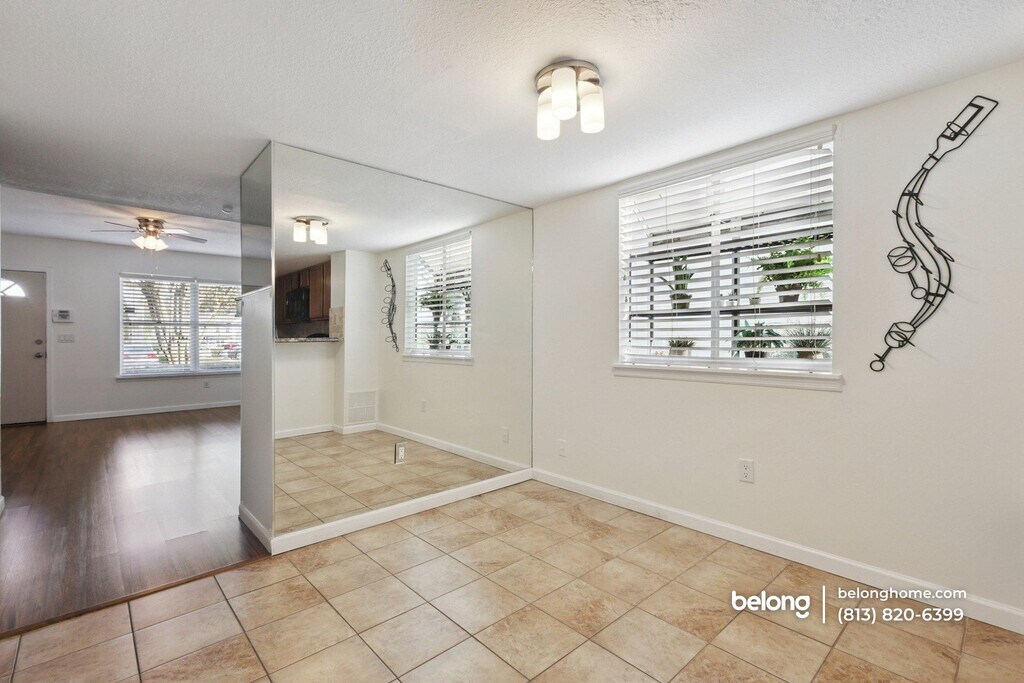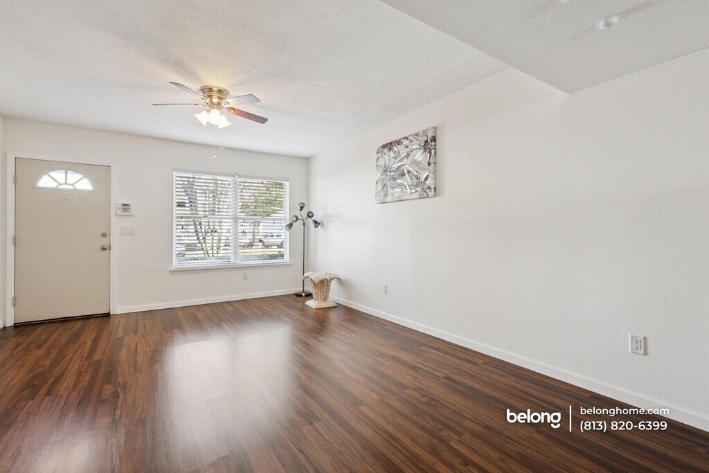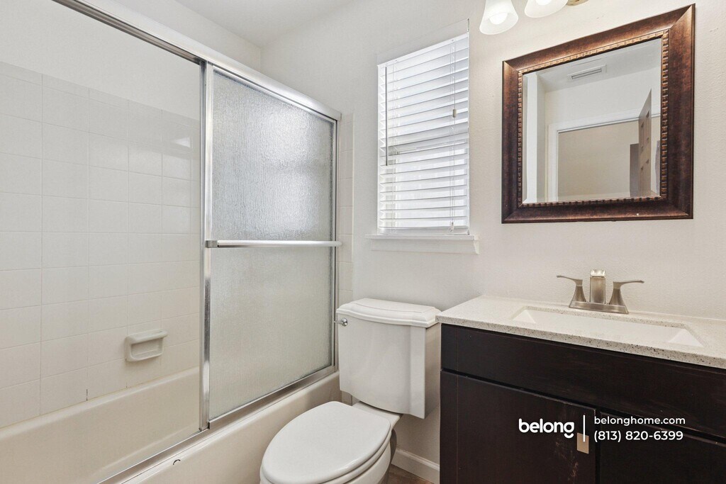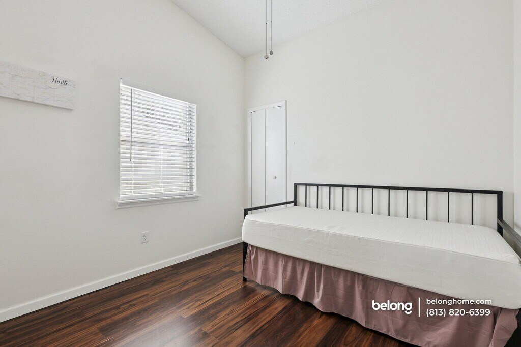 Welcome home to your perfect Tampa retreat! This beautiful, spacious 3-bedroom, 2.5-bath townhome is nestled in a stunning, well-maintained community—offering comfort, style, and convenience all in one. Step inside to an open, light-filled layout with hardwood floors and tile downstairs, plus Berber carpet and hardwood upstairs. The living area flows into a screened-in lanai overlooking a peaceful pond, creating the perfect spot for morning coffee or evening unwinding. Upstairs, you’ll find a large master suite with cathedral ceilings, a private master bath, and a skylight that fills the room with gorgeous natural light. There’s plenty of room for a king-size bed, plus extra space for a reading nook or home office. The additional bedrooms comfortably fit a queen bed and a twin, making it ideal for families, roommates, or those who want extra space to spread out. The home also features: *Dishwasher, microwave, stove/oven, washer & dryer *Generous storage + large closets *Community pool access *Water INCLUDED *Free cable included The location is unbeatable—just minutes from Ben T. Davis Beach, the Veterans Expressway, dining, shopping, and everything Tampa has to offer. This townhome truly has it all: space, light, scenery, and convenience. Move-in ready and waiting for someone who will love it! The home is offered with existing furniture, which can be kept or removed upon request. *Our homes come as-is with all essentials in working order. Want upgrades? Request it through the Belong app, and our trusted pros will take care of the rest!