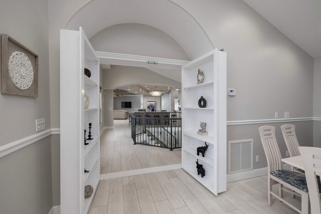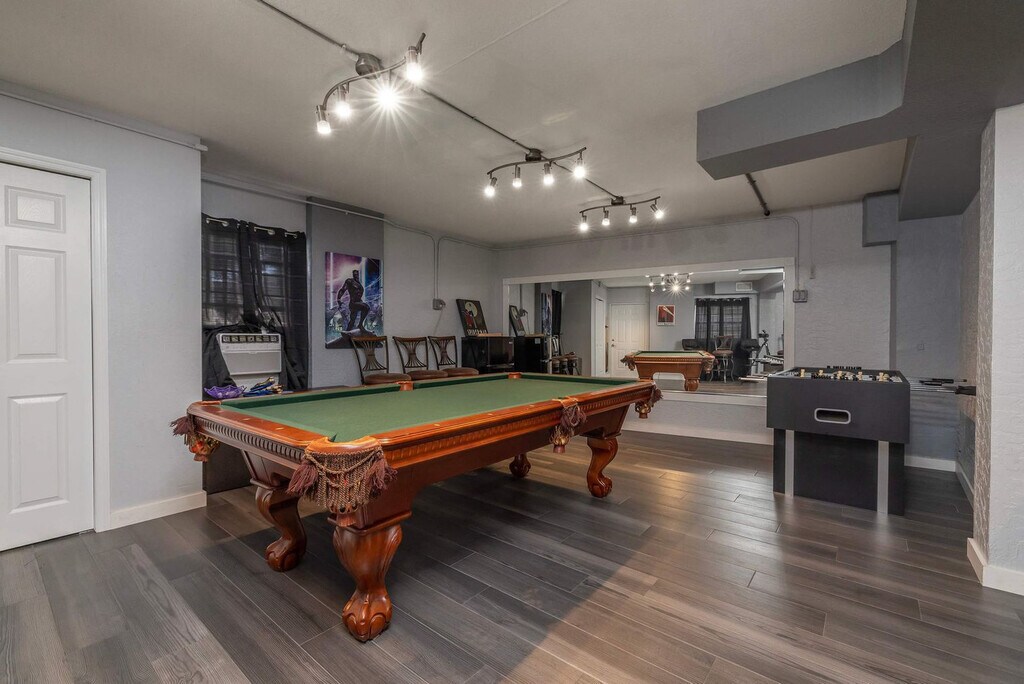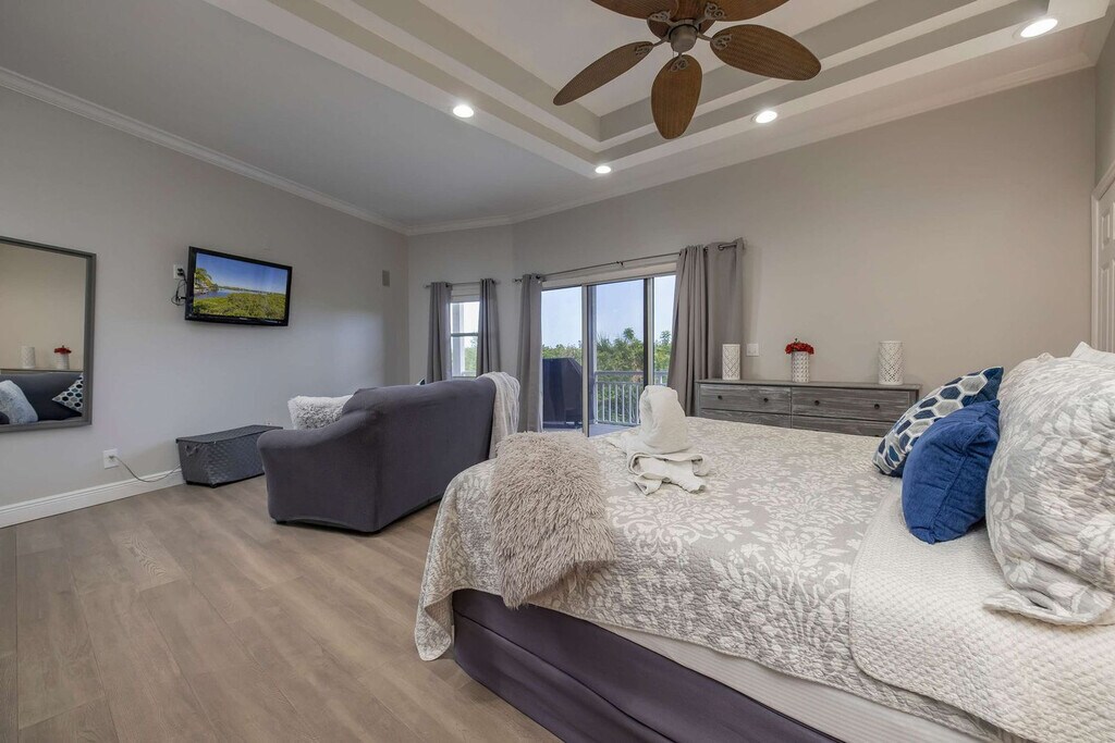 Feel at home in this large, waterfront home in Palm Harbor, featuring 6-bedrooms and 5.5-bathrooms and sleeping up to 14 guests. This three-story retreat offers Gulf views from the viewing deck on the roof (4 floors up) and several balconies, where you can spot dolphins and enjoy sunsets. This home is designed for group getaways and multi-family vacations, with a heated pool, hot tub, fire pit, private dock, boat lift, game room, and movie theater. The home features two distinct wings connected by a custom high-tech bookshelf that opens with a key fob. The chef's kitchen is equipped with expansive marble counters, custom two-tone cabinetry, Wolf appliances, double ovens, an induction cooktop, a wine fridge, and a large island. The outdoor oasis includes a heated pool, hot tub, multi-level decks, a private dock with boat slip, deep-water access to the Gulf, a jet ski–friendly floating dock, and an outdoor shower. Kayak and paddleboard rentals are available at the park next door, and kayaks can be delivered directly to your doorstep. Boat rentals are available within minutes. Free on-site parking is available for your boat trailer. Situated directly on Sutherland Bayou with deep-water access, this home is steps from Pop Stansell Waterfront Park and walking distance to downtown Palm Harbor’s restaurants, breweries, nightlife, and the Pinellas Trail. You're a short stroll from downtown Palm Harbor’s best restaurants, craft breweries and cocktail bars, boutique shops, Pop Stansell Park, and the Pinellas Trail, with easy access to Dunedin, Tarpon Springs, Clearwater Beach, and Honeymoon Island. Quiet hours are between 10 PM and 8 AM. [SI]