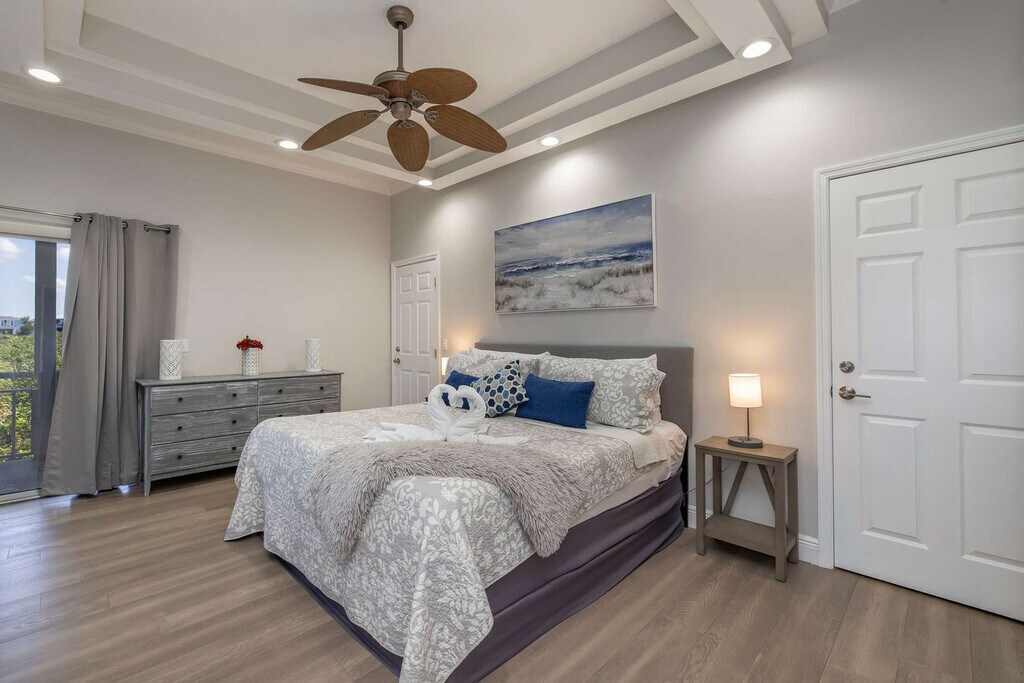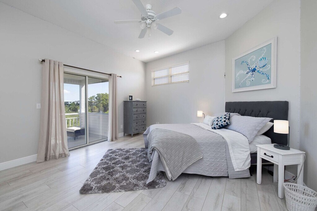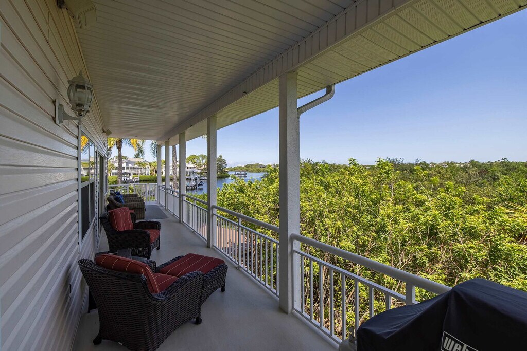 Feel at home in this 4-bedroom, 4-bathroom waterfront home that is half of a very large 3-story house on Palm Harbor, offering views of the Gulf. This home comfortably sleeps up to 12 guests with 6 beds and features several balconies, a large heated pool, a hot tub, a fire pit, a private dock, a boat lift, a game room, and a projector for movie night. The chef's kitchen is made for entertaining with expansive marble counters, custom two-tone cabinetry, Wolf appliances, double ovens, an induction cooktop, a wine fridge, and a huge island for group cooking and cocktails. The outdoor oasis includes huge multi-level decks for dining, lounging, and sunbathing, deep-water access to the Gulf, a jet ski–friendly floating dock, an outdoor shower, and lush landscaping. Free on-site parking is available for your boat trailer. Situated directly on Sutherland Bayou with deep-water access, this home is steps from Pop Stansell Waterfront Park and within walking distance of downtown Palm Harbor’s restaurants, breweries, nightlife, and the Pinellas Trail. It also provides easy access to Dunedin, Tarpon Springs, Clearwater Beach, and Honeymoon Island. Quiet hours are observed between 10 PM and 8 AM. [SI]