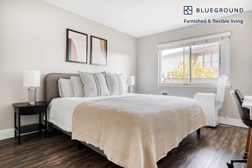 Show up and start living from day one in Foster City with this charming one bedroom Blueground apartment. You’ll love coming home to this thoughtfully furnished, beautifully designed, and fully equipped Foster City home. (ID #SFO765) The advertised rate of $3,830/month is the lowest available price, based on a 12 month(s) stay with a move-in date of March 8, 2026. Rates vary depending on the duration of stay, season, and other parameters. For exact pricing and additional pricing components, please visit our website and enter your desired move-in and move-out dates. The rate is applicable when billed upfront; it can be higher if billed in multiple payments. Brokers are welcome to reach out. Were you looking for an unfurnished lease? Try Blueground instead and upgrade from unfurnished to furnished living: - Furnished at rates comparable to unfurnished - No setup or furniture costs - save thousands - Move-in ready - save time, just bring your suitcase Designed with you in mind Thoughtfully designed with bespoke finishes, modern furnishings, and a fully equipped kitchen, you’ll enjoy that “I’m home” feeling with this Blueground apartment. Whether you’re lounging in your cozy living room streaming the latest and greatest entertainment on the smart TV or premium wireless speaker, or getting some well-earned rest on the superior quality mattress with luxury linens, you’ll fall in love with everything this Foster City apartment has to offer. This apartment also offers in-apartment laundry. Sleeping arrangements King Bed, 70.8in/180cm Amenities Building amenities unique to this one bedroom apartment include an on-site: - BBQ Area - Dryer - Elevator - Game room - Swimming pool - Washing machine - Parking - Pets allowed - Playground Arrival and ongoing support The entire apartment is yours to enjoy! Throughout your stay, you’ll have access to our Client Experience team through the Blueground App. You can schedule additional cleanings, submit maintenance requests, and view our neighborhood recommendations with just a few taps. We’ll share all details upon confirmation of your stay. Ideally Located This furnished home is located in Foster City in San Mateo County. This fast-growing, diverse city is set right on San Francisco Bay and Visa maintains their headquarters here along with several prominent biomedical and tech companies. The city has excellent public schools and there are 24 public parks, making it a great choice for families. Most residents of Foster City use cars to get around, since the city offers easy access to the 101 freeway. Other things to note Building amenities may have an extra cost. This Blueground apartment has flexible lease options, allowing you to book it for one month, a year, or more. Pets are welcome, though weight limits and breed restrictions apply and may incur fees. Parking is offered based on availability and is subject to a fee. We take great pride in ensuring every photo displayed is shot in our own units with our actual furnishings. That said, we regularly refresh our decor and furniture arrangement, which may differ from what’s pictured. [SI]