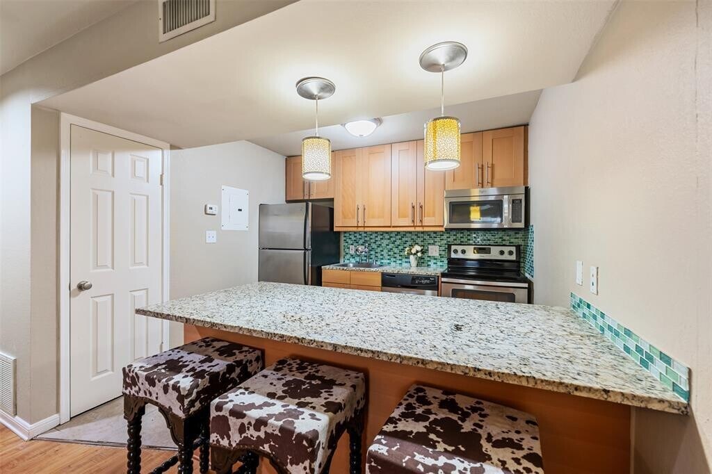 Freshly updated 1 Bed 1 Bath in the highly sought after Allendale Condo's available for a September move in. Enjoy stainless steel appliances, granite countertops, custom mosaic tile backsplash accents throughout, recess lighting and many more upgraded finishes. Huge walk-in closet. Washer / Dryer included. Owner pays for PREMIUM CABLE, INTERNET, WATER, WASTE WATER & TRASH. Pool, workout facility & clubhouse on-site!