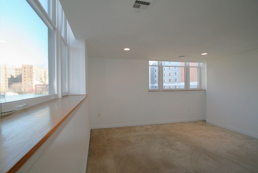 Expansive two-bed plus office/den Soleil Lofts duplex with dramatic soaring ceilings offers the luxury of 1810 square feet of loft style living. Located in booming McGinley Square and just minutes from Journal Square and vibrant downtown JCs many shops, restaurants, parks and extensive night life this delightful home features a large modern kitchen with granite counter tops and breakfast bar, stainless steel appliances, rich cabinetry and limestone back splash that opens to a spacious living/dining area with over-sized palladium window offering abundant natural light that’s ideal for entertaining family and friends or just relaxing in your urban retreat. Sizeable primary bedroom with a wall of closets on the first floor can easily accommodate a king-size bed and another huge bedroom plus separate bonus room w/ generous walk-in closet that’s perfect as an office, den or game room are located along with a second full bath on the upper level. Tasteful contemporary baths with marble vanities and limestone flooring, including primary with soaking tub. Abundant storage, recessed lighting, in-unit washer/dryer and central air complete this splendid home. Easy commute to Manhattan with bus at the corner or short distance to the PATH.