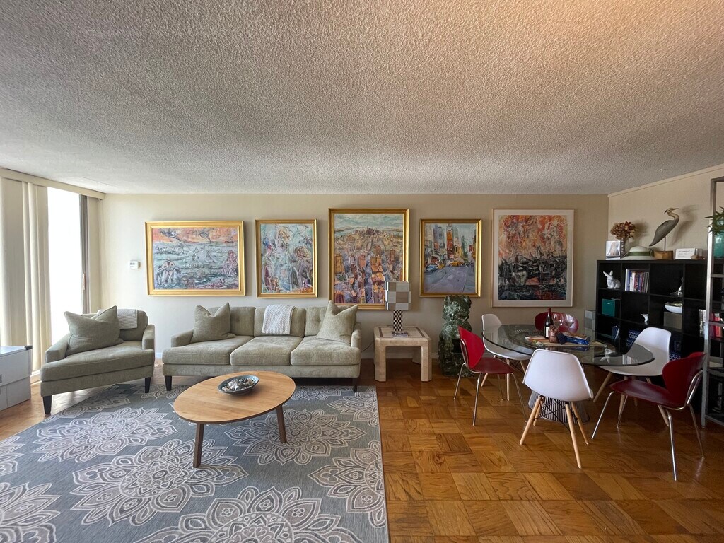 Available 8/1/2026. Great one bedroom unit in the Brook House. Super sunny,courtyard facing apartment with dishwasher/disposal,a/c,pass through from kitchen to living room with breakfast bar and a huge walk-in-closet. Kitchen and bathroom have tile floor,living room and bedroom have wood floors. Laundry in building. Building has a pool and health club! One garage parking space can be rented for an additional $200/month. MLS# 73474534