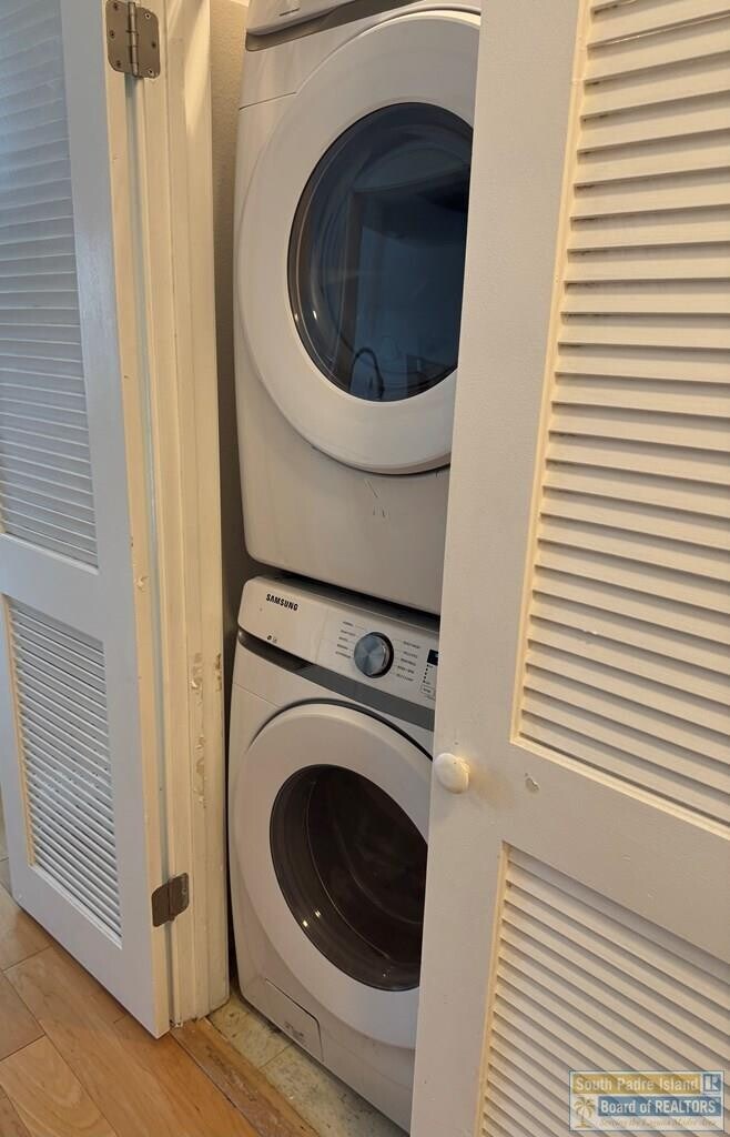 Welcome to coastal living! Beautiful gated bayfront community just minutes to the port, Harlingen and Brownsville. 10-minute drive to grocery stores (HEB and Walmart), restaurants and family activities. Community heated pool, free boat slips, fish cleaning station, and on site storage units. Beautifully maintained condo offers balcony views overlooking the pool and Laguna Madre bay. Perfect for morning coffee or a glass of wine in the evening. Spacious open concept living and dining area. Butcher block countertops and breakfast bar. Hardwood floors throughout. Master suite with walk-in closet and en-suite bathroom. Second bedroom with large closet can easily be used as an office. Top and bottom front load washer/dryer. HOA includes Spectrum high speed Wi-Fi and cable.