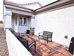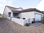 Beautiful golf-course views and stunning sunsets from the back patio overlooking the fairway. The masterbedroom and great room feature elegant plantation shutters. Home includes ceramic tile flooring withwood-laminate in the bedrooms. Refrigerator and washer/dryer are included. Attractive pebble-techdriveway adds great curb appea