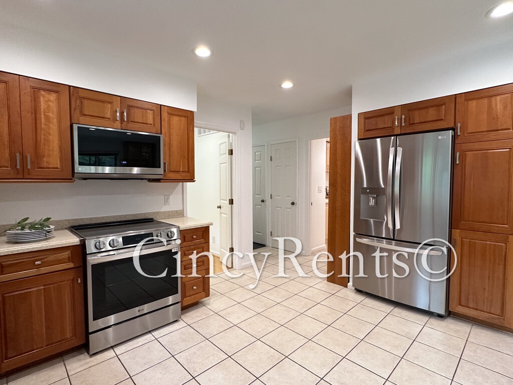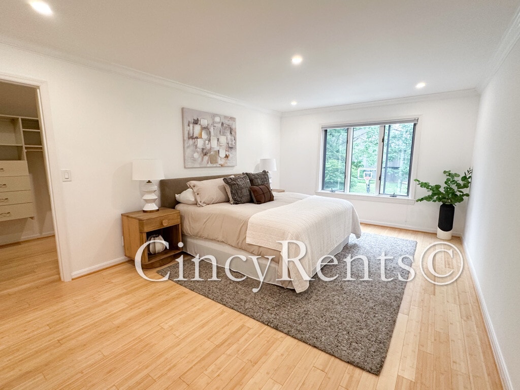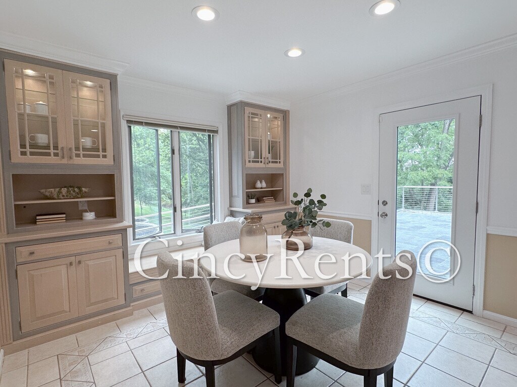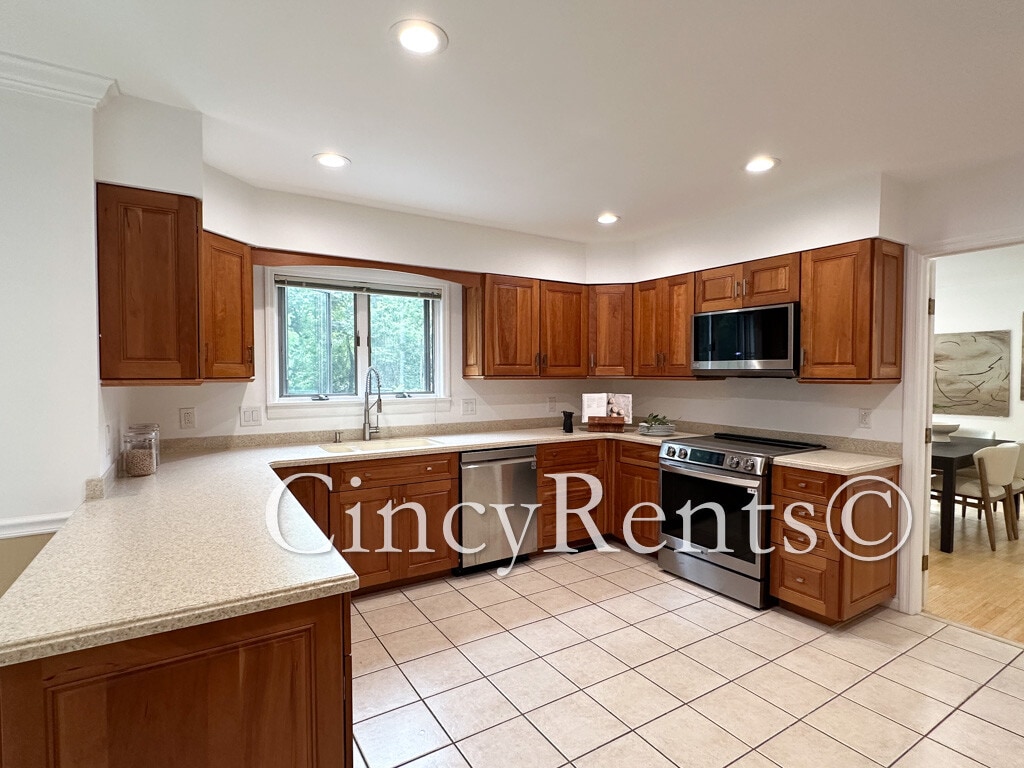 Amberly Village, known for its beautiful parks and tree lined streets, is a centrally located community convenient to highways and features a mix of gorgeous architecture with a focus on green spaces. Nowhere is this serene landscape more evident than from the estates nestled in the rolling hills surrounded by nature at its finest. Welcome to Creekwood Lane! Rare rental opportunity on this gorgeous 4+bedroom 3.5 bath stunner featuring 3800sqft of lovingly maintained living space with no detail overlooked. Spanning three finished levels, this exquisite floorplan features fully equipped eat in kitchen with abundant cabinet and counter space, stainless steel appliances, and adjoining breakfast room with rear walkout and formal dining room. Both living room and family room are full of natural light and offer serene, wooded views. The top level offers three spacious bedrooms including master suite with adjoining full bath and expansive walk-in closet all with gleaming hardwood flooring throughout. The lower level offers two finished rooms ready for your vision whether you need additional bedrooms or prefer the flexibility of a home office with ample storage and home gym, both are adjacent large laundry room and generous storage area. In the event the gorgeous interior is not enough, the views from every room call you to the real star of the show…….the three-tiered 2000+sqft patio adorned in Brazilian slate overlooking the serene, wooded lot full of mature trees and surrounded by nature alike. This perfectly engineered outdoor space is perfect for relaxation and entertainment and features built in storage room beneath the first tier ready to store all of your outdoor sofas, tables, and chairs. With additional amenities such as central heating and air, new recessed touch control lighting, expanded drive leading to the 2 car automatic garage and basketball area, woodburning fireplace, beautiful hardwood flooring, and more storage room than you could ask for, meticulously maintained and situated on a quiet no outlet street in sought after Amberly Village, this home is an absolute must see! Call for a private showing today!