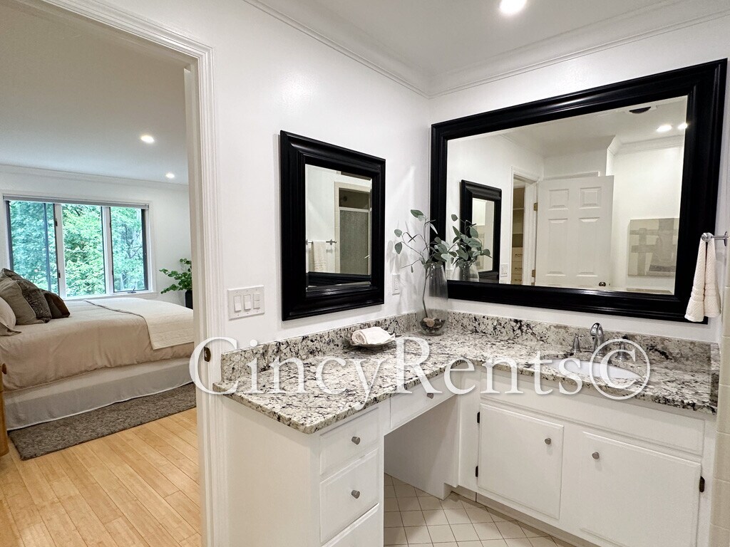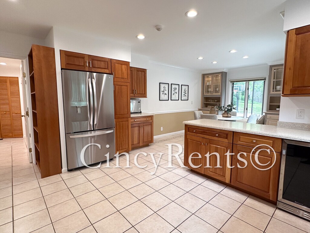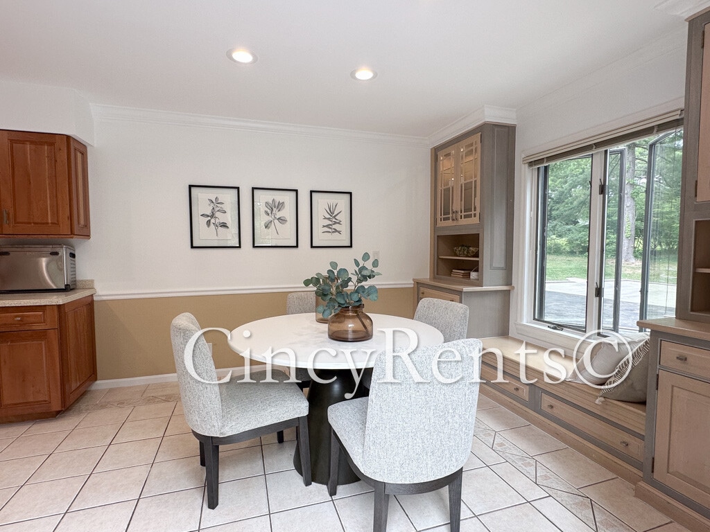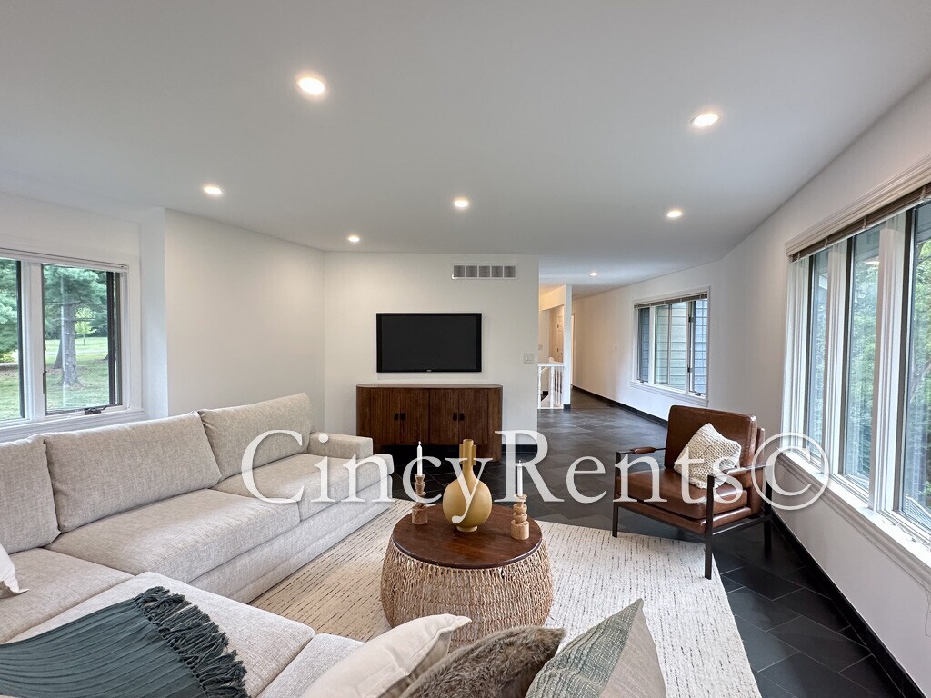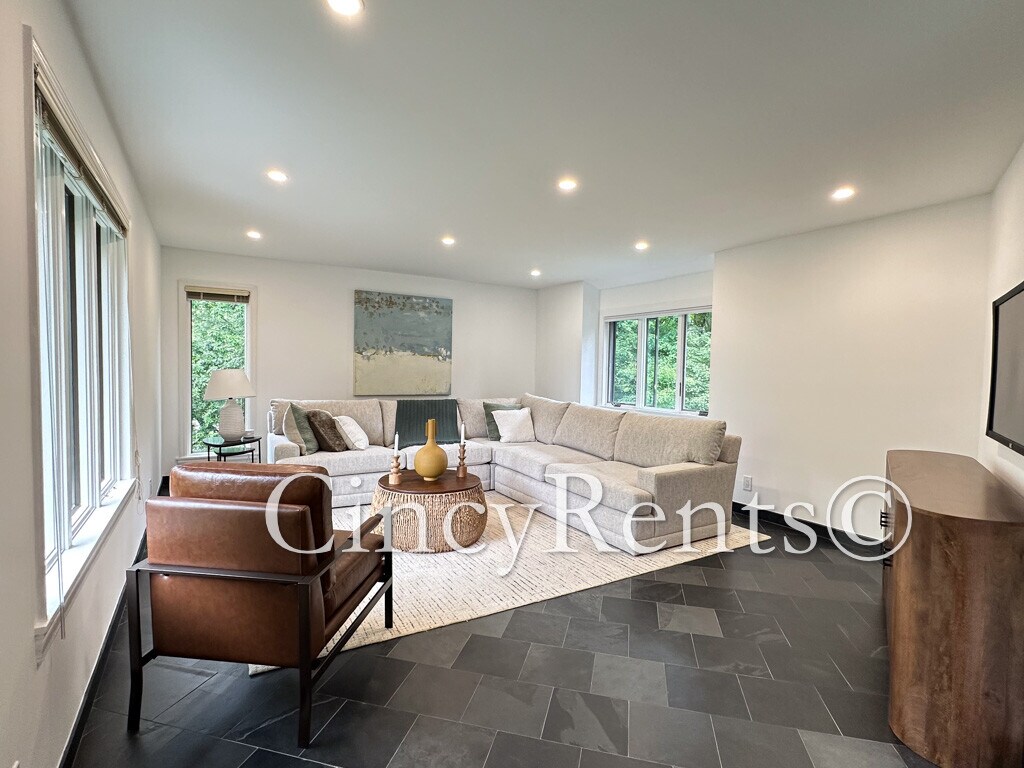 Amberly Village, known for its beautiful parks and tree lined streets, is a centrally located community convenient to highways and features a mix of gorgeous architecture with a focus on green spaces. Nowhere is this serene landscape more evident than from the estates nestled in the rolling hills surrounded by nature at its finest. Welcome to Creekwood Lane! Rare rental opportunity on this gorgeous 4+bedroom 3.5 bath stunner featuring 3800sqft of lovingly maintained living space with no detail overlooked. Spanning three finished levels, this exquisite floorplan features fully equipped eat in kitchen with abundant cabinet and counter space, stainless steel appliances, and adjoining breakfast room with rear walkout and formal dining room. Both living room and family room are full of natural light and offer serene, wooded views. The top level offers three spacious bedrooms including master suite with adjoining full bath and expansive walk-in closet all with gleaming hardwood flooring throughout. The lower level offers two finished rooms ready for your vision whether you need additional bedrooms or prefer the flexibility of a home office with ample storage and home gym, both are adjacent large laundry room and generous storage area. In the event the gorgeous interior is not enough, the views from every room call you to the real star of the show…….the three-tiered 2000+sqft patio adorned in Brazilian slate overlooking the serene, wooded lot full of mature trees and surrounded by nature alike. This perfectly engineered outdoor space is perfect for relaxation and entertainment and features built in storage room beneath the first tier ready to store all of your outdoor sofas, tables, and chairs. With additional amenities such as central heating and air, new recessed touch control lighting, expanded drive leading to the 2 car automatic garage and basketball area, woodburning fireplace, beautiful hardwood flooring, and more storage room than you could ask for, meticulously maintained and situated on a quiet no outlet street in sought after Amberly Village, this home is an absolute must see! Call for a private showing today!