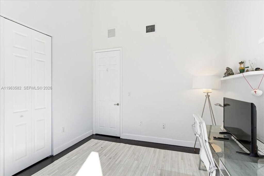 Wen Jun LinRarely find Mediterranean-style tri-level townhouse featuring 2 bedrooms and 2 bathrooms. This bright and spacious home offers high ceilings, impact-resistant windows, and three private balconies. The first floor features a private garden, an ideal sitting area or home office, a garage, and an in-unit washer and dryer. The second floor offers an open living area with tile flooring, a guest bathroom, and a gourmet kitchen equipped with stainless steel appliances. The third floor includes two bedrooms with vinyl flooring and a full bathroom. Additional highlights include walk-in closets and excellent natural light throughout. The property includes one garage space plus one assigned parking spot. Ideally located within walking distance to the Metrorail station, restaurants, shops, places of worship, and more. Easy to show.