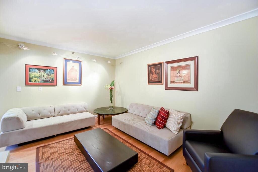 FOR RENT: A spacious, sunny one-bedroom home with a landscaped private garden patio is now available. This lush outdoor space offers a serene escape from city life—perfect for enjoying a quiet moment or entertaining guests. Inside, the home features a large living room and bedroom with windows that overlook the private courtyard patio, while mature tree foliage provides natural screening for added privacy. The bedroom includes custom-installed blackout roller blinds, and the living room is equipped with light-filtering blinds for additional comfort. Other highlights include several large closets, an in-unit washer and dryer, and hardwood flooring throughout. Building Amenities include a fitness center, terrace with gazebo, conference room, business center, and 24/7 concierge—offering both convenience and peace of mind in a prime location. The building is just steps from the Gallery Place Metro hub, the National Portrait Gallery, Capital One Arena, and several popular shops and restaurants.