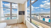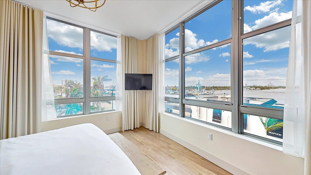 Feel at home in this brand-new studio apartment, steps from the legendary Hollywood Beach Boardwalk. No car is needed to enjoy this centrally located apartment. This well-appointed studio mixes natural wood and stone with organic textures and state-of-the-art technology. It offers a stainless steel refrigerator, microwave, dishes, coffee maker, and toaster. The spacious bedroom includes a hairdryer, electronic safe, iron/ironing board, and TV. Enjoy ceramic floors, electronic door locks, European-style cabinetry, and modern-style designer fixtures and faucets. Enjoy access to the rooftop infinity pool, hot tub, gym, and sundeck. A pack-n-play crib is available upon request. One pet per unit is welcome for free, but fees may apply for additional pets. Note that the condo has a 25 lbs restriction for pets (doesn’t apply to ESA). Parking is available at the condo for $42 a day, or you can issue a public parking pass for the whole month for $110 plus taxes, which allows you to park on any street or city parking lot (300 Connecticut St). Located along North Ocean Drive in the lively community of Hollywood Beach, this apartment puts you at the heart of the action. Within walking distance of the famous Hollywood Beach Broadwalk and the beach, you can enjoy exciting activities such as jet skiing, fishing, boating, biking, and golf. South Beach and Miami are a short drive away. The Broadwalk has bars, restaurants, boutiques, and shops. For a truly local experience, you can visit The Le Tub Saloon, Capone's Italian, GG's Waterfront Grill, Nick's Bar & Grill, and Taverna Opa. Check-in is any time after 4PM and check-out is any time before 11AM. Swimming is at your own risk, as there is no lifeguard on duty, and children must be supervised by a responsible adult at all times. For your safety, no diving or running is allowed. Please keep all doors closed and the air conditioning on at all times to help prevent condensation and property damage. The public beach and Boardwalk within the City of Hollywood Beach does not allow pets (service animals are still welcome!). [SI]