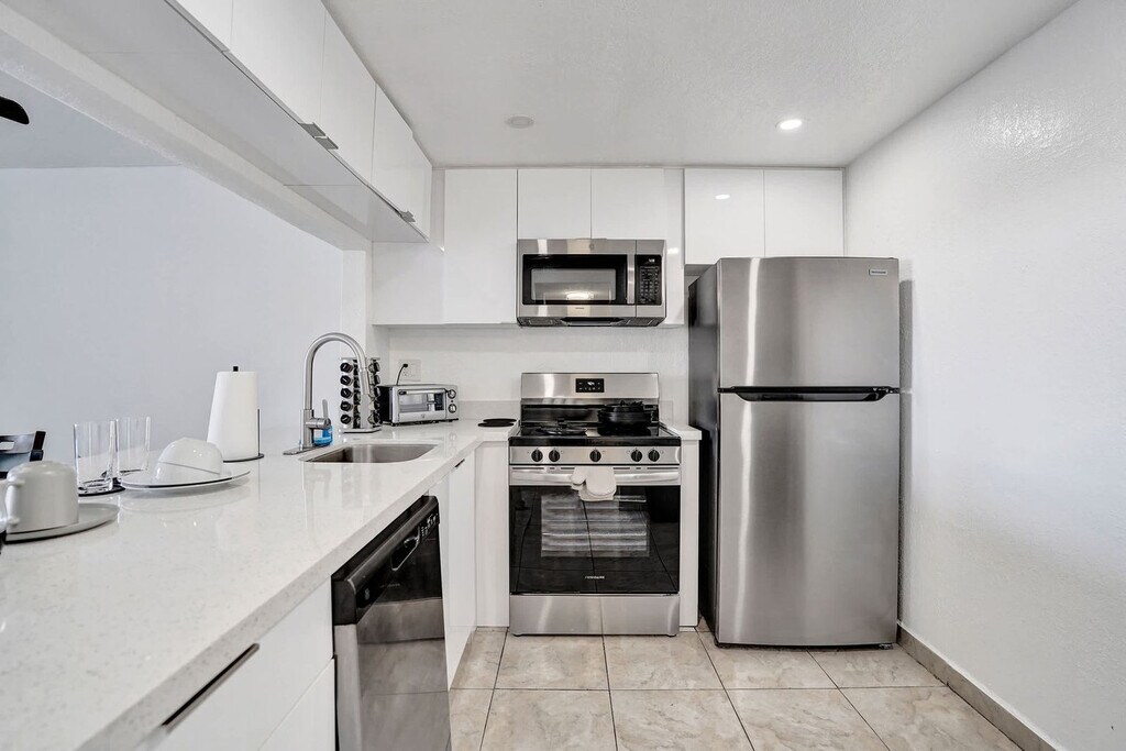 The advertised rate of $2,575/month is the lowest available price, based on a 30 day(s) stay with a move-in date of May 6, 2026. Rates vary depending on the duration of stay, season, and other parameters. For exact pricing and additional pricing components, please visit our website and enter your desired move-in and move-out dates. The rate is applicable when billed upfront; it can be higher if billed in multiple payments. Feel at home in this cozy and private 1-bedroom unit in Miami Gardens, perfect for short-term or extended stays. This 1-bedroom unit is designed for simple, practical comfort. The bedroom features a full-size bed and a ceiling fan. The bathroom includes a bathtub for relaxing after a long day. The fully equipped kitchenette includes an induction stove with oven, microwave, toaster oven, refrigerator, dishwasher, water kettle, and Keurig K-Compact coffee maker. It is ideal for solo travelers or couples who want privacy. Pets must be approved before booking and are subject to a pet fee that varies by property. Guests must agree to clean up pet waste, keep pets leashed or crated when outside, and are responsible for any damage caused by pets. The pet fee must be paid prior to receiving check-in instructions. Early check-in or bag drop-offs must be requested and approved in advance, and late check-out may be available upon request; additional fees apply and vary by property. Located in Miami Gardens, this home offers easy access to Hard Rock Stadium, Aventura Mall, Gulfstream Park, Sunny Isles Beach, and Oleta River State Park. The area is residential and quiet, with grocery stores, restaurants, and essentials just a short drive away. Easy access to I-95 and major highways makes getting around South Florida straightforward. No parties, gatherings, or events are allowed and will incur a $500 fine and immediate removal without refund. Quiet hours are from 10:00 PM to 9:00 AM. Any noise complaint may result in a $500 fine and/or cancellation without refund. No indoor smoking (includes cigarettes, vaping, hookah, cigars, or cannabis) is permitted. Outdoor smoking is permitted at least 10 feet from the building, with doors and windows closed, and any violation will incur a $500 fine and may result in immediate cancellation without refund. Guests must send a photo of a valid ID that matches the reservation name via message before receiving check-in instructions. Guests must sign the rental agreement and check-in form before arrival. Any tampering with cameras or connected devices will incur a $1,000 fine and may result in immediate cancellation without refund. Please note that the partner will place a $350 refundable authorization hold on a credit or debit card about 72 hours before arrival for security. If damages or policy violations occur, related charges may apply; otherwise, the hold is released after checkout and processed within 5-7 business days. [SI]