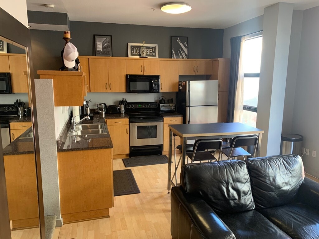 Amazing 1 bdr/1bth Loft w/balcony in a modern apartment building in the heart of the Gaslamp Quarter in Downtown San Diego. Building amenities include a gym and outdoor relaxation area with BBQ. Any restaurant or bar in Downtown is a stone's throw away. It's only a 5 minute walk to Petco Park (Homes of San Diego Padres) and the Convention Center. A 5 minute drive to Seaport Village, Little Italy, Hill Crest and within 10 minutes drive to San Diego Zoo and North park.15 minutes drive to Sea World, Pacific Beach and Mission Beach. The apartment is fully furnished and includes high sealing, garbage disposal, central air, central heat, kitchen with dishwasher, stainless steel appliance, washer dryer in unit, Smart tv, wheelchair accessible, The apartment is connect to the relaxation area. Pets are welcome. The rent is $2,800/month rent with $2,800 security deposit required. The rent includes water, Internet with gigabit WIFI and parking. The parking is in a public parking garage 2 blocks away. Electricity is not included. If you want to include electricity, let me know and we can work with it. *Qualified applicants need a minimum 650 credit score and 3 times the rent in monthly gross income to qualify. *Background check is also require. If you want to look at reviews of the condo, you can go to