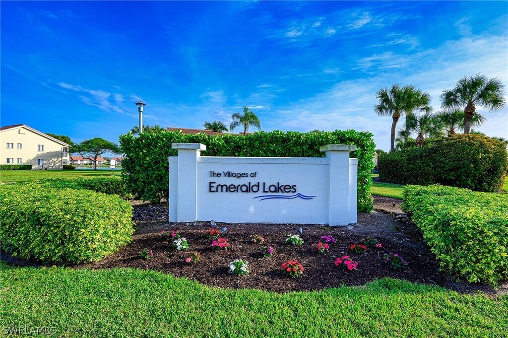 Price Improvement! Available May 1,2026. Beautiful first-floor end-unit 3BR/2BA condo with peaceful lake views in the highly desirable Emerald Lakes community in North Naples. This light-filled residence offers an open living and dining area,laminate flooring in main living spaces,tile in kitchen and baths,and a screened lanai overlooking the lake—perfect for relaxing and enjoying the view. The split-bedroom floor plan provides privacy,and the primary suite features a walk-in closet and en-suite bath. Emerald Lakes is a gated community that offers excellent amenities including two community pools,tennis courts,clubhouse,fitness room,and scenic walking paths. Prime North Naples location,A+ rated schools,just minutes to Mercato,Vanderbilt Beach,Waterside Shops,dining,and shopping.