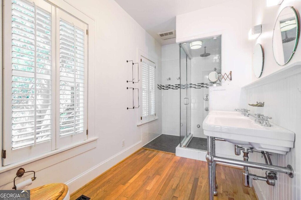 Welcome to this charming home in Peachtree Park-one of Buckhead's most desirable and walkable neighborhoods-where tree-lined streets, no cut-through traffic, and direct access to PATH 400 create a true urban retreat just moments from world-class shopping, dining, MARTA, and all that Buckhead, Midtown, and Downtown Atlanta have to offer. The community features a garden, playground, nature trail, and Bynum Bridge Park, which connects directly to Lenox Mall, restaurants, and shops. Flooded with natural light, the main level offers stepless living with a welcoming fireside living room, dining room, bright sunroom, three spacious bedrooms including a primary suite with custom walk-in closet and a beautifully renovated bath, plus a chef's kitchen with granite countertops, gas range, Sub-Zero refrigerator, stainless appliances, and breakfast nook that opens to a private grilling patio. The finished terrace level expands the living space with sweeping backyard views through modern glass garage doors, and includes a bedroom, full bath, den, and large laundry/workout room-ideal for guests, a home office, or gym. Outdoors, enjoy a level backyard with a tranquil water feature and fire pit, perfect for entertaining or relaxing evenings, with lawn care included. Offering great schools, convenience, and a welcoming neighborhood feel, this home is truly an oasis in the heart of Atlanta.