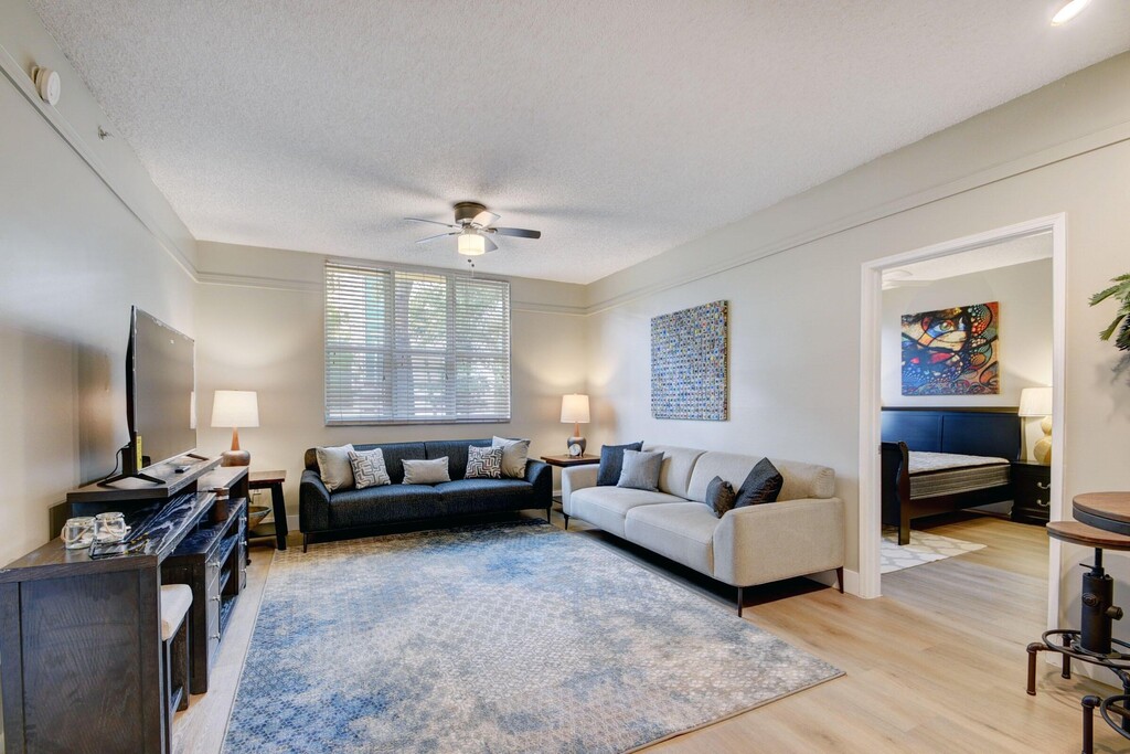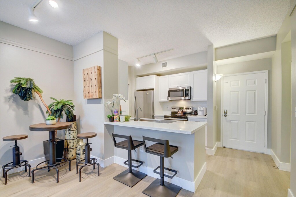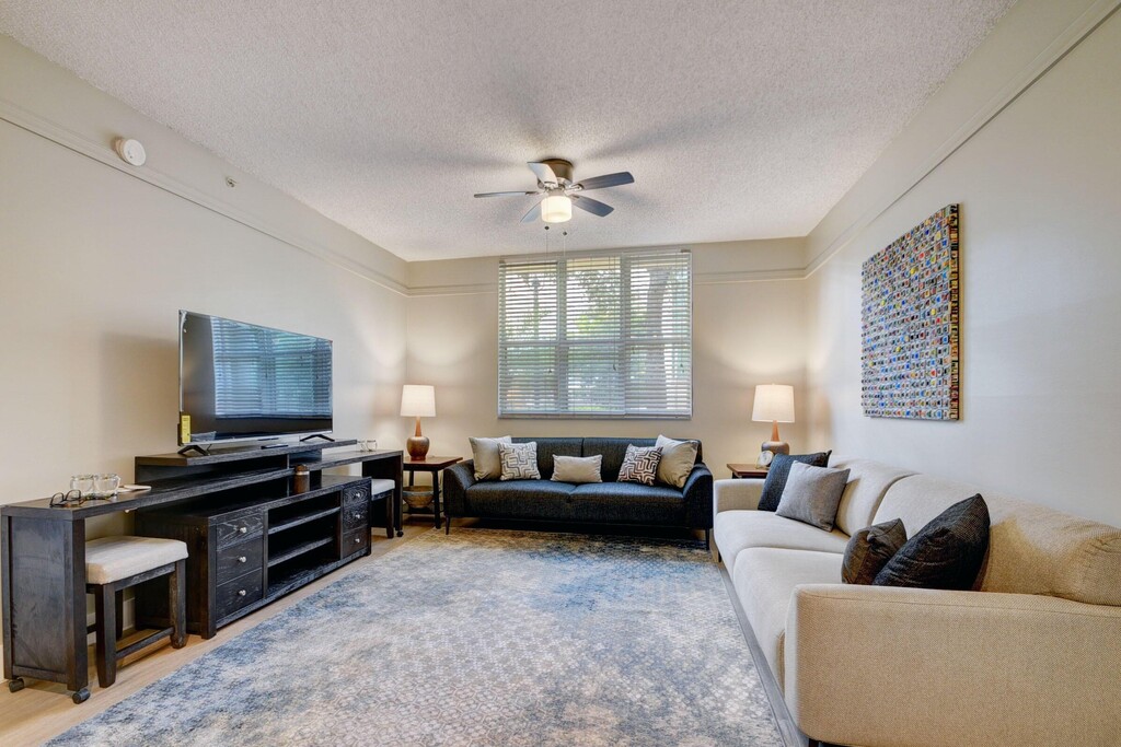 Experience upscale living in this beautifully furnished 2BR/2BA condo at The Courtyards in CityPlace. This first-floor unit features a split floor plan, elegant laminate floors, a modern kitchen with stainless steel appliances, and a stylish living area perfect for relaxing or entertaining. Enjoy resort-style amenities including a pool, hot tub, fitness center, and onsite management. Walk to top restaurants, cafes, bars, shops, movie theater, Kravis Center, and Palm Beach Convention Center. Minutes from PBI Airport. The vibrant, walkable neighborhood offers a European lifestyle with everything at your doorstep. Whether you're enjoying the cultural events or grabbing a coffee at a local cafe, you'll love the convenience. Available annually or seasonally (minimum 3 months). $5,000 / month