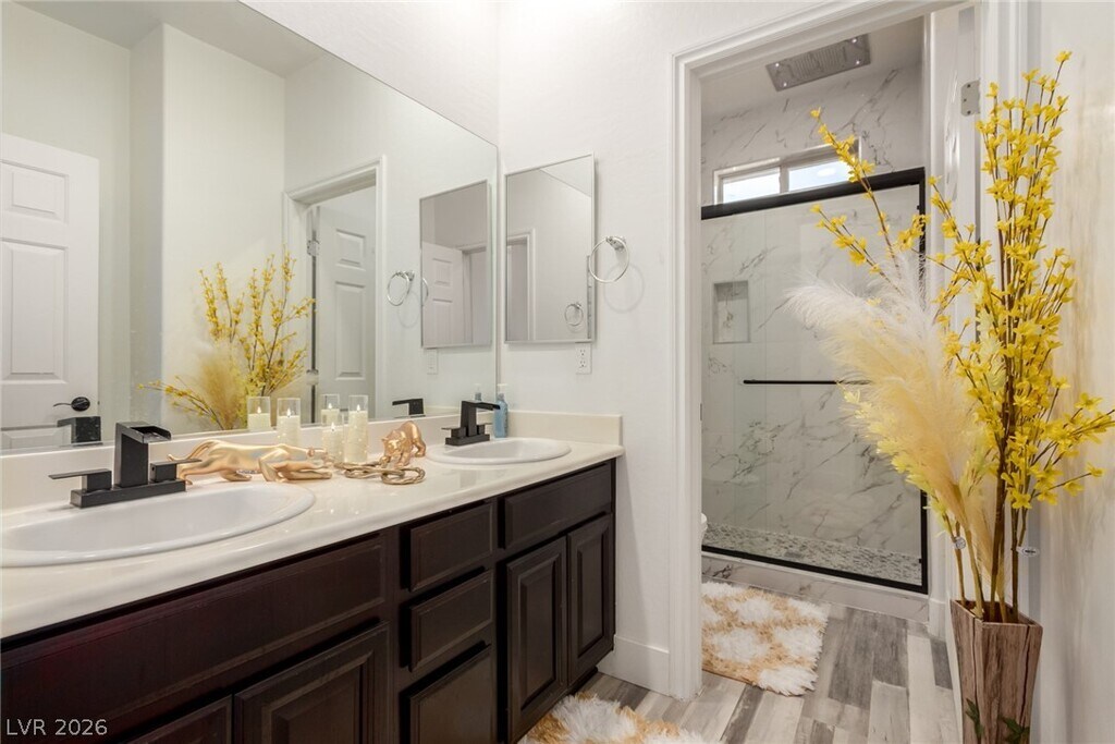 Spacious and highly upgraded 3-bedroom home with modern finishes throughout. Step inside to an open-concept floor plan that seamlessly connects the kitchen, dining area, and family room—perfect for everyday living and entertaining. The kitchen features a large island, stylish backsplash, and a huge walk-in pantry offering plenty of storage. Upstairs you'll find a versatile loft, two guest bedrooms, a guest bathroom, laundry room, and the primary suite. Luxury vinyl plank flooring runs throughout the upstairs along with beautifully upgraded bathrooms. The primary suite includes a custom spa-like bathroom designed for relaxation. Additional upgrades include a water softener and numerous custom touches throughout. Enjoy a large backyard with easy-maintenance landscaping and no rear neighbor, providing added privacy. A well-designed home combining space, upgrades, and functionality in a great setting.