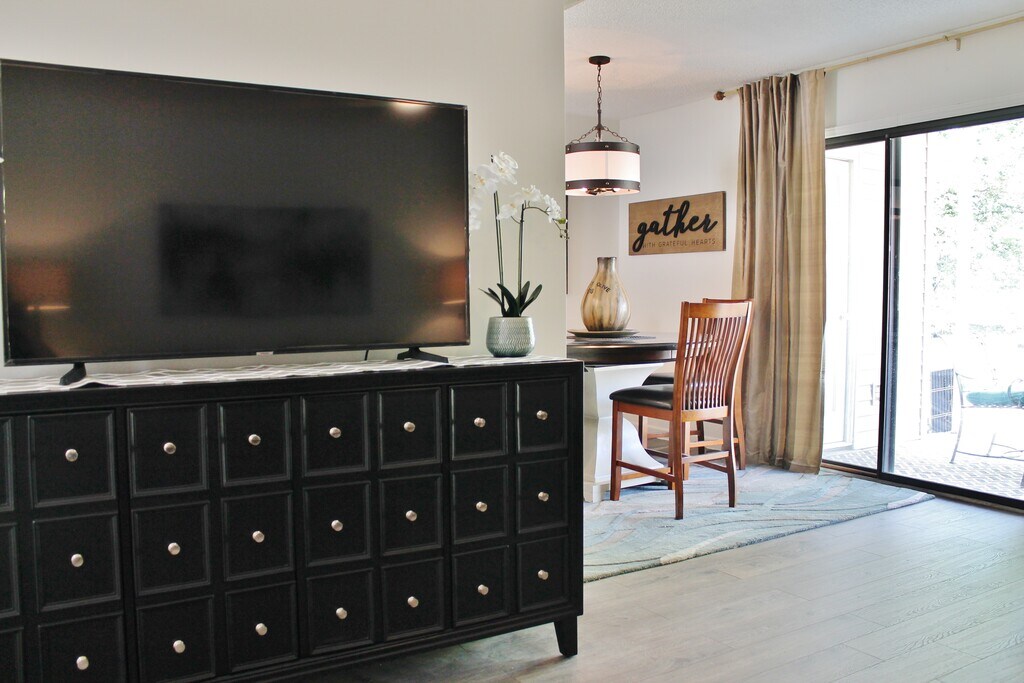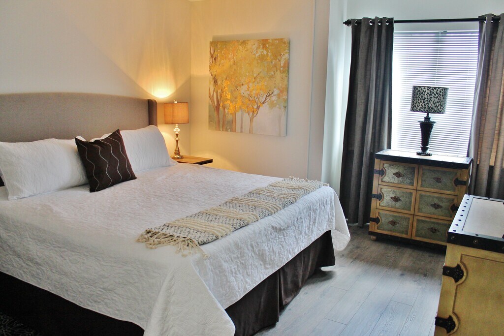 Accommodates: 4 Beds: 2 (Kings) Parking: 2 Baths: 2 More Information: Fabulous 2 bedroom condo in a wonderful location! Convenient to Ballantyne, Southpark, I-485, shopping and restaurants. Large, open floor plan with loads of natural light. Cozy fireplace in livingroom. Convenient first floor location, with a nice outdoor patio. The master bedroom has a king sized bed, private bath and 2 double closets. The guest room also has a king sized bed and a private bath. Livingroom and bedrooms have flat screen smart tv's. Amenities: A/C Wifi Cable Utilities Washer/Dryer TV's (3 flat screens) Towels Linens Pool All of our properties come completely furnished. Rental includes all utilities, basic cable, wireless internet as well as all of your linens, towels, pots & pans, dishes, washer and dryer..…all you have to do is unpack your suitcase and start making yourself at home!