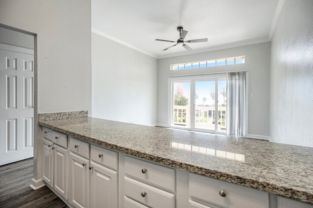 Susanna MayberryOCEANFRONT VIEWS! ! Looking for a place with amazing views on Galveston's famous Seawall? Come check out The Oceanfront Galveston Apartments! The only complex in Galveston where every balcony offers a direct view of the Gulf of Mexico. This is modern, waterfront living at its finest. Each unit has been upgraded with granite countertops, hardwood plank floors, and custom crown molding. Upon entering, you will immediately notice the spacious, open design. The Coral plan features 2 bedrooms (one with private sliders to the balcony) and 1.5 baths; a galley kitchen with all appliances that opens to the living room with another set of sliders leading to the oversized balcony perfect spot for morning coffee. This gated community accepts both cats and dogs, and your four-legged friends can enjoy our leash-free pet park. Residents have access to 24-hour fitness center, bbq grilling station, and free garage parking. Located just minutes from all things Galveston Book your appointment today!!