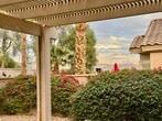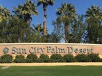 Located in Sun City Palm Desert, a 55+ Senior community association. This 1,110 sq. ft. home has been freshly painted with new flooring. There are 2 bedrooms and 2 bathrooms. The kitchen has a breakfast area with direct access to a private yard with grassy area and covered back patio. The homes in this section have their own pool and spa and are entitled to use all the other clubhouses and amenities in the complex. This area also has a direct cart entrance into the local shopping center parking lot and is close to convenient resident entrance gate. Wi-Fi and cable package included. Sun City is a gated community with 2 golf courses, 3 club houses, several pools and spas, 2 fitness centers, softball field, restaurants, postal center, dance studio, banquet facilities, tennis, pickle ball, bocci ball, and so much more.