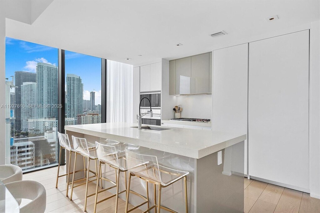 Edgewater’s prestigious Elysee Residences, with interiors designed by Jean-Louis Deniot, offers a sophisticated living experience. Residence #2201 features 3 Bedrooms + Den, 4.5 Baths, and 2,743 SF of bright, open living space with 10-ft floor-to-ceiling glass walls. Interiors showcase wide wood-porcelain floors, a state-of-the-art surround sound system, automated shades, custom lighting, and a 90+ bottle wine cooler. East and west-facing balconies capture sweeping views of Biscayne Bay and the Miami skyline. A private elevator foyer, 2 parking spots, valet service, and a dedicated storage unit complete this elegant residence.