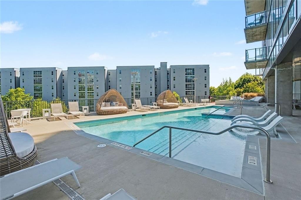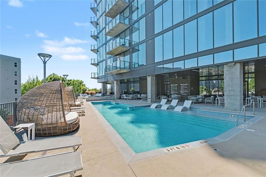 At 788 W Marietta Street NW,608,in Atlanta,GA,US,resides a residential property in great condition,epitomizing luxurious living through its amazing design and the use of top tier materials. The heart of this residence reveals a meticulously designed kitchen,a culinary haven equipped with a generous kitchen bar and a substantial large kitchen island,both adorned with exquisite stone countertops. Culinary endeavors are elevated by a high-end range oven,a sophisticated stovetop,and a high-end refrigerator,all complemented by a distinctive wall chimney range hood. Natural light bathes this space through expansive floor to ceiling windows,highlighting the elegant backsplash and creating an inviting atmosphere for both preparation and gathering. Encompassing 1329 square feet of refined living,this thoughtfully constructed residence,completed in 2020,offers roommate style bedrooms with well-appointed bathrooms designed for comfort and privacy. Extending beyond the interior,a private patio provides an exclusive outdoor living space,presenting captivating city views. This personal retreat is further enhanced by a charming fire pit,perfect for serene evenings. Furthermore,residents enjoy access to a community pool,providing a resort-like amenity for relaxation and leisure. This meticulously crafted residence presents an unparalleled opportunity for sophisticated urban living,inviting discerning individuals to experience its unique blend of comfort and elegance. MLS ID 7755538