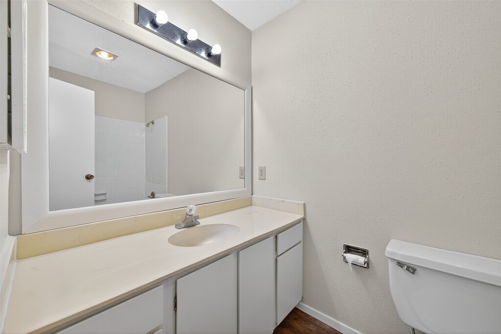 Beautifully UPDATED 2-bed,1-bath condo in the gated Briar Green community near the Texas Medical Center! This second-floor PARK-VIEW unit features NEW paint,hardwood flooring throughout,tile flooring in the kitchen and bathroom—NO carpet anywhere. Upgraded kitchen offers granite countertops,a designer backsplash,and a convenient breakfast bar. Spacious living room includes a cozy wood-burning fireplace and opens to a private balcony W/serene PARK VIEWS and extra storage. Both oversized bedrooms include walk-in closets,and the bathroom features dual sinks,updated granite countertops,and stylish finishes. Ceiling fans are installed in all rooms. HOA dues include Comcast high-speed internet,water,sewer,and trash. Community amenities include a pool,tennis courts,clubhouse,and covered parking. PRIME location near NRG Stadium,METRO Rail,and the Texas Medical Center—ideal for professionals or investors seeking convenience,comfort,and exceptional value! MLS# 79210874