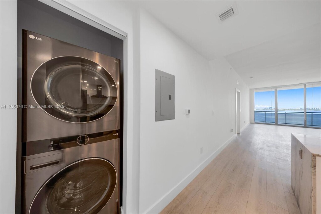 Available April 1st 2025. Enjoy magnificent direct bay views from this modern 2-bedroom unit, with a third bedroom converted from a den (no window). Features include 10-ft ceilings, granite countertops, Italian cabinetry, an in-unit washer and dryer, and a large glass balcony with stunning views of the Miami skyline. The Lexi offers fantastic amenities, including 24-hour security, a gym, pool, Jacuzzi, business center, media room, 2 assigned parking spaces, and storage. Located just 10 minutes from the beach and a short drive to South Beach, this building is new, modern, and includes cable and internet in the HOA fees. Experience upscale living at a great price!