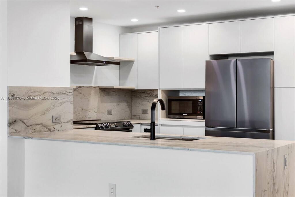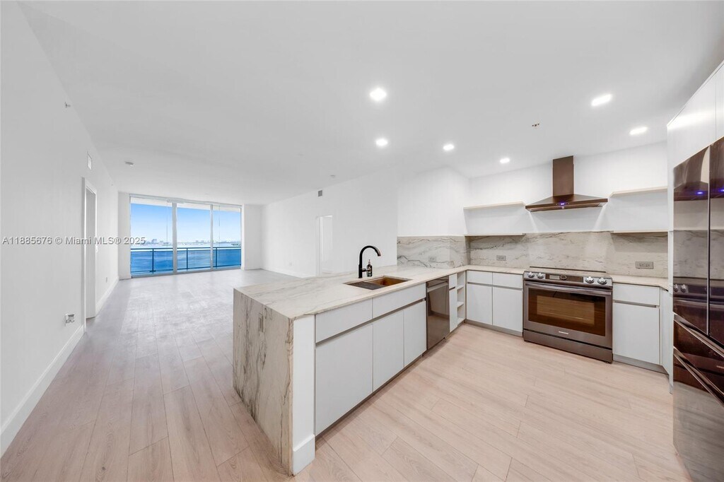 Bright and spacious 2BR/2BA condo at The Lexi with stunning, unobstructed bay and city views from every room. This 1,458 SF unit features 10-ft ceilings, floor-to-ceiling impact windows, and custom walk-in closets in both bedrooms. Enjoy a large private balcony, open kitchen with granite counters and stainless steel appliances, and a luxurious primary suite with spa-style bath, double vanities, soaking tub, and separate shower. Includes in-unit washer/dryer and two garage parking spaces. Full-service building offers 24-hr concierge, fitness center, club/media room, infinity pool, spa, and EV charging stations. Centrally located near Miami Beach, Midtown, and Aventura. Available Sept 29, 2025.