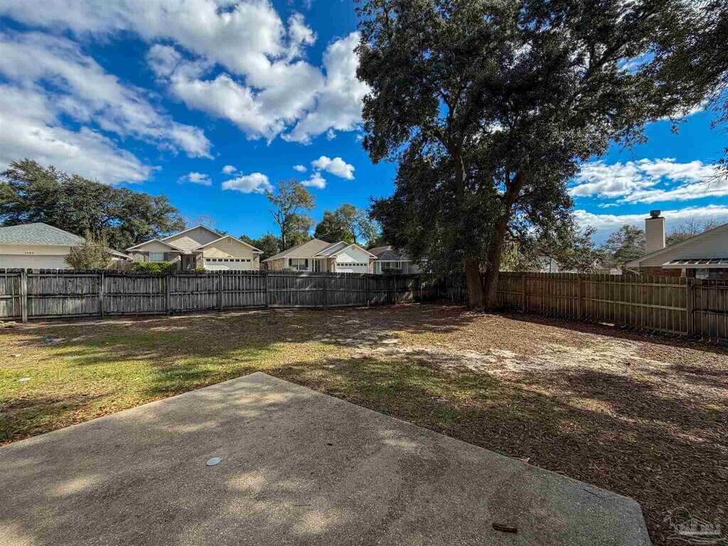 Pet Friendly,beautiful home on a corner lot!! The lovely front porch and large,fully fenced backyard offer copious amounts of space to enjoy the cool fall nights. This house offers plenty of natural light and has high ceilings,large bedrooms,formal dining space,and a split floor plan. Conveniently located just East of Saufley Field and Blue Angel Pkwy,this home is a must-see! All Hometown Properties of the Gulf Coast residents are enrolled in the Resident Benefits Package (RBP). RBP is $50 per month and includes liability insurance,credit building for on-time rent,up to $1M ID theft protection,HVAC filter delivery (where applicable),resident rewards,and on-demand pest control. More details provided with application.