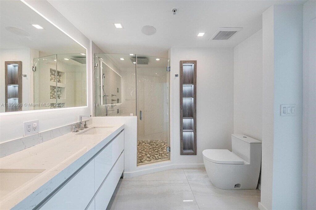 Experience waterfront living in this fully renovated modern masterpiece townhouse at 360 Condominium. Enjoy breathtaking bay views, abundant light, and a spacious private terrace. With private entry, two parking spaces, and sleek finishes—every detail is brand new. This 3BD/2BA residence features full smart-home automation powered by Savant, an open kitchen with designer lighting, electric blinds, and a Thermador wine cooler for hundreds of bottles. The primary suite opens to the terrace with spa bath and walk-in closet, while guest bedrooms offer comfort and style. The 360 community includes a private marina, two pools, gym, and 24-hour security. In-unit washer/dryer included. Unmatched opportunity—nothing like this in North Bay Village, won’t last!