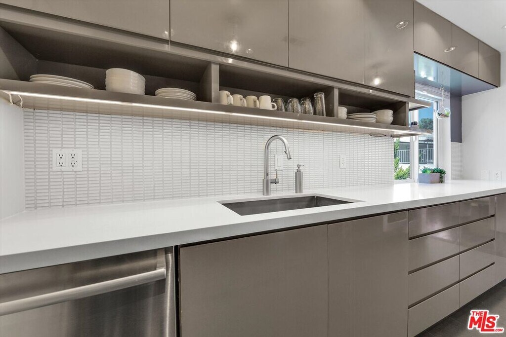A sophisticated condo located in one of LA's most desirable and quietly tucked away neighborhoods above Sunset Blvd. This 2-bedroom, 2-bath, remodeled and well maintained residence features: washer/dryer in unit, gourmet kitchen with new Bosch stainless steel appliances and touchless faucet, new double-pane windows and sliding door, European bathroom fixtures, and a water filtration system in both the kitchen and primary shower. Enjoy smart-home living with central air and heat, Lutron lighting, and a Ring doorbell - all controlled from your phone. The top-floor corner layout offers windows on 3 sides and no shared walls to neighbors, filling the home with natural light and exceptional privacy. The living room overlooks the Hollywood Hills, while the dining area flows effortlessly into the kitchen, ideal for entertaining. Step onto your private balcony, where outdoor tile perfectly matches the indoor oak wood floors, creating a seamless indoor-outdoor feel. The primary bedroom features stunning Downtown LA views, blackout shades, and an incredible en-suite bath with (for once!) enough closet space. The secondary bedroom is perfect for guests, family, or use as a home office or creative studio. All of this is set within a secured mid-century building featuring a pool, side-by-side parking, security features throughout, and additional storage. Conveniently located near Trader Joe's, Chateau Marmont, Laugh Factory, Whole Foods, Bristol Farms, and more LA favorites. MLS# 25605619