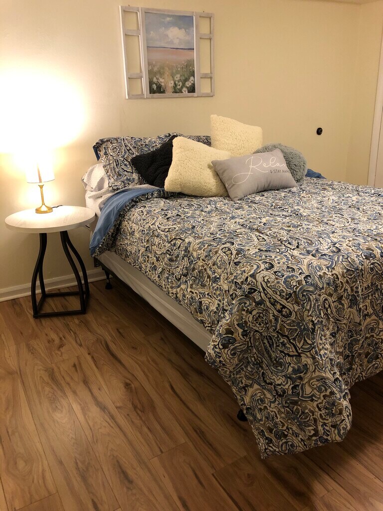 Holiday Move-In Deal! Enjoy $0 deposit and no last month's rent when you lease this home. A perfect gift for your wallet this season! City Chic 2-Bedroom Duplex with Private Driveway & Yard Located in a small residential circle neighborhood with a perfect blend of comfort, privacy, and walking distance of grocery ,shopping, dining, coffee shops, night life, etc. Key Features Two Bedrooms: Retreat to your cozy haven perfect for creating your dream sleep sanctuary. The master bedroom offers a picturesque view of the secluded wooded surroundings. The second bedroom features custom-built shelving for added functionality and style. Private Yard: Unwind in your private, lush yard - the perfect spot for morning coffee, evening stargazing, or hosting a barbecue with friends and family. Private Driveway: Say goodbye to the hassle of street parking. You'll have your very own private driveway, ensuring convenience and peace of mind. Charming Laminate Flooring: Step into a world of warmth and elegance with laminate flooring that complements any decor style. Barn Doors: Add a touch of rustic charm with stylish barn doors that seamlessly blend modern aesthetics with classic appeal. Peaceful Circle Neighborhood: Nestled in a tranquil and quiet circle, you'll experience a sense of community and security, making it the perfect place to call home. Additional Amenities Modern Kitchen: Cook up a storm in the well-appointed kitchen with modern appliances and ample counter space. Open Concept Living: Enjoy the spacious open layout that makes entertaining a breeze. Pet-Friendly: Your furry friends are welcome to share in the joys of your new home.