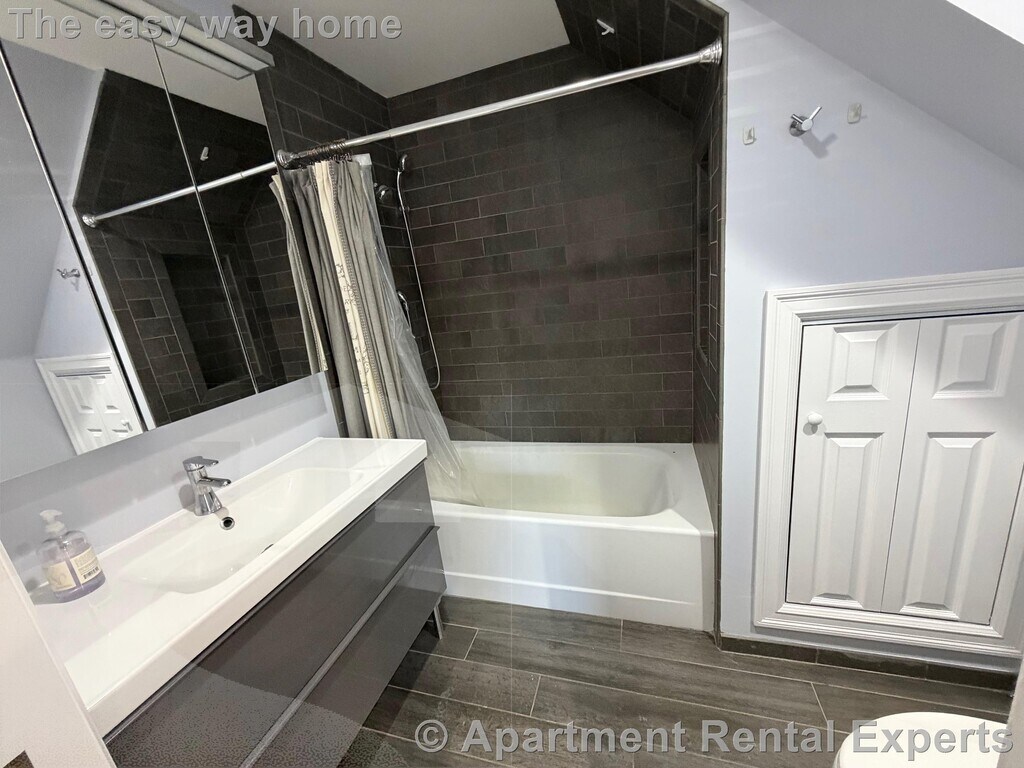 Renovated 1 bedroom / 1 bathroom apartment in a three-family home with hardwood floors throughout. Open concept kitchen with dishwasher, disposal and microwave. Laundry is in the basement down back stair right off the kitchen and is exclusive use for first floor unit. Central AC, walk in closet in one bedroom. This unit gets the WHOLE DRIVEWAY and easily fits two cars, maybe more in a pinch. (Reference #174539)