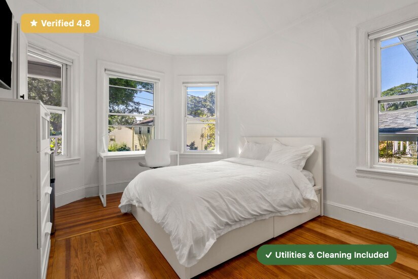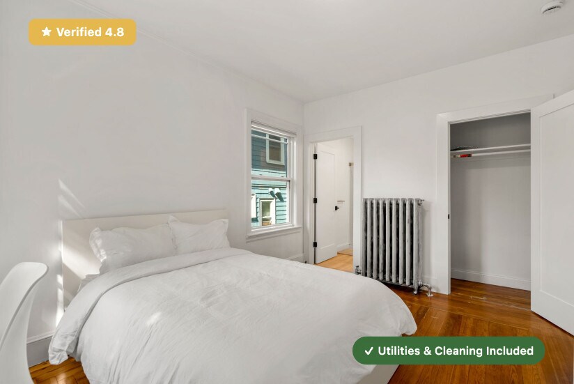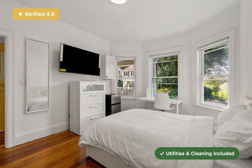 RoostUp is offering a beautifully renovated private bedroom in a 4-bedroom / 3-bath apartment at 80 Patten St. in Jamaica Plain. Just a short walk to the MBTA Orange Line and close to local shops, cafés, and green spaces. Check out RoostUp’s 100+ reviews averaging 4.8 stars on Google and Facebook. Enjoy a completely furnished, all-inclusive living experience. The shared kitchen is fully stocked and features updated stone countertops, stainless steel appliances, and a 4K Smart TV. RoostUp amenities include all utilities, high-speed WiFi, in-unit laundry, central air, and bi-weekly cleaning. Here's what’s included: Furnished Private Bedroom with Ensuite Bath - New bed and high-quality mattress - Matching dresser with desk, lamp, and chair - Full-length mirror and coat rack - Custom closet system with built-in storage Stocked Kitchen and Furnished Living Area - Renovated kitchen with modern countertops and stainless steel appliances - Kitchenware, dishes, glassware, and flatware - Fully furnished common area with sofa, chairs, and coffee table - 4K Smart TV Utilities & Cleaning - All utilities (gas, electric, WiFi) - 1Gbps high-speed internet - Bi-weekly professional cleaning - Keyless smartphone locks - Free in-unit laundry - Weekly trash and recycling removal - Included for one flat monthly fee RoostUp never charges a broker fee or security deposit. Only First and Last Month Rent due at lease signing. Sorry, no couples or pets. The RoostUp application process includes a credit and background screening. International applicants can submit copies of valid passport & visa.