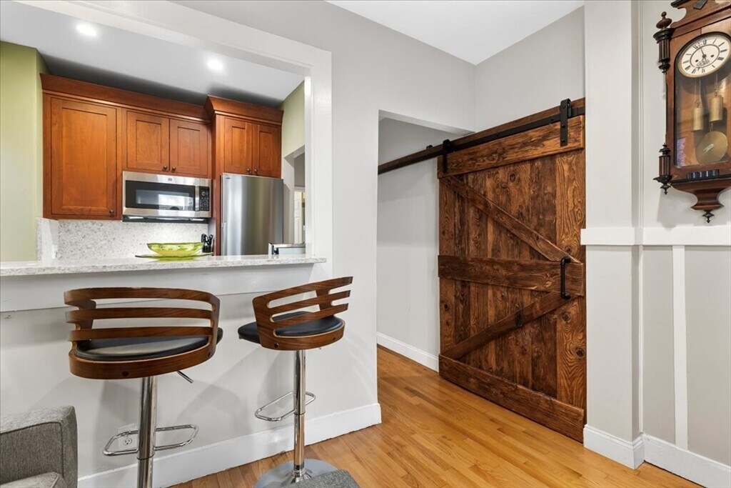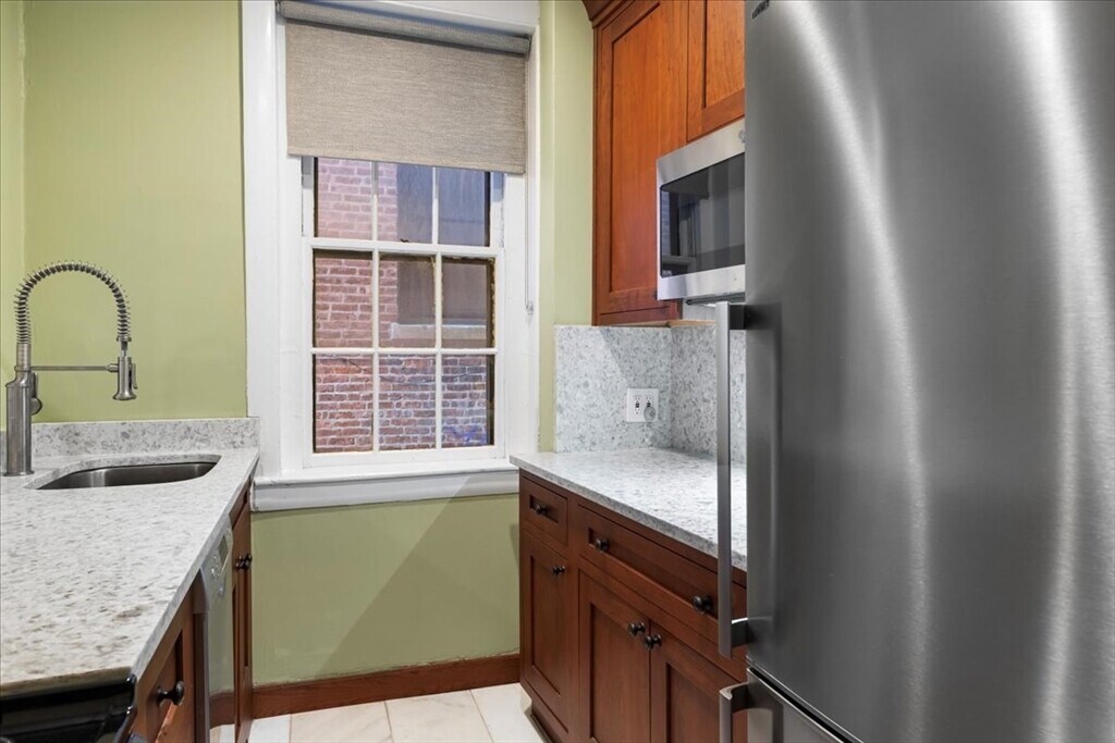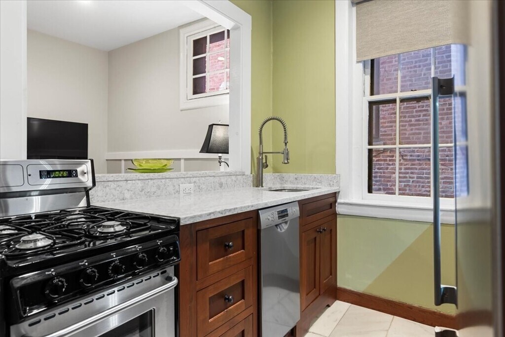 This beautifully furnished condo quality 2 bedroom apartment is in an unbeatable location in close proximity to multiple lines of the T/Subway, Hospitals, Cambridge, Whole Foods, and all the wonderful offerings found on Charles St. Your new home is recently renovated with abundant storage and in unit washer/dryer which is carefully hidden behind a sliding barn door hand crafted from reclaimed lumber. The kitchen includes Quartz counters, Stainless Steel Appliances, and the all important dishwasher. The kitchen is fully equipped with everything you need and more. Nothing to do but bring your favorite pillow. Move right in and enjoy all the city has to offer. Unit can also be delivered unfurnished.