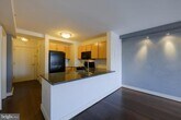 Unique top-floor 1BR/1BA + Den condominium for rent in the Southwest Waterfront district. Rent includes utilities, a storage unit, and building amenities, including a gym, pool, business center, reservable social/party room, onsite security, and 24/7 concierge with mail/package management. Unit comes with a dedicated, covered parking space available for $200/month. In addition to having two balconies (with a view of the Washington Monument and the fireworks in July!), the unit features windows on two sides (south and west facing), gets lots of natural light across the open floor plan, and benefits from beautiful evening sunsets. The unit has high, 10' ceilings and thick concrete behind the walls (and floors!) separating it from the other units, making for quiet neighbors. It also features capacious closets in every room. Finally, it has its own air conditioning/heating, independently controlled from the building and with no ventilation overlap to the common spaces. Perfect for a professional couple! The unit is conveniently located between three metro stations (L'Enfant Plaza, Waterfront and Federal Center Southwest, 1-5 blocks from each) representing access to the Blue, Silver, Orange, Green and Yellow lines, and has straightforward access to I-395/695. On foot, it is a short walking distance to the Waterfront and Navy Yard districts (including Nats Park and DC United Stadium) and is less than 15 minutes from the Smithsonian Museums, National Mall and Tidal Basin. 4th Street (out front) also features dedicated bike lanes and DC bikeshare can be accessed directly across the street. The unit is currently painted stylishly, but tenants may repaint any color of their choosing. Pets welcome (building and unit are pet friendly). Unit will come unfurnished. Furnished photos reflect previous tenant; unfurnished photos provided for reference.