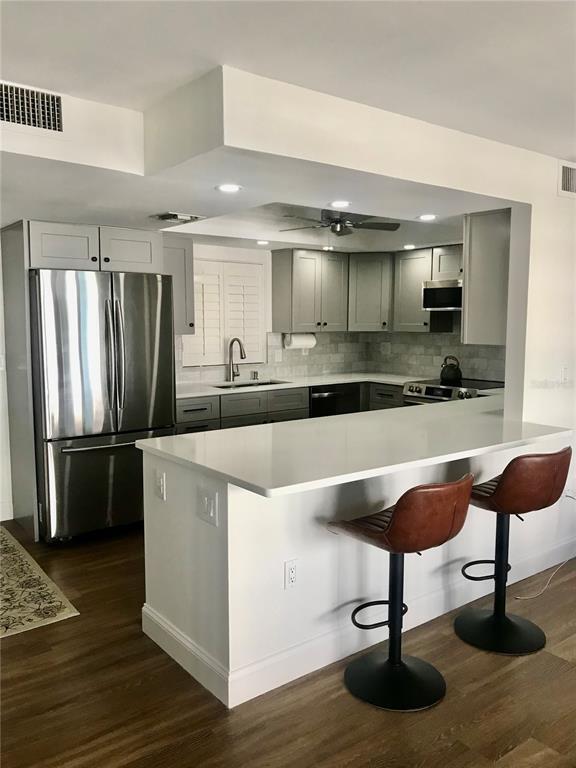 Beautiful beach condo located on Lido Key at the Lido Ambassador. This turnkey furnished condo has one bedroom and one and a half bathrooms. BRAND NEW KITCHEN AND PRIMARY BATHROOM PLUS NEW PAINT THROUGHOUT. Wood floors and tile throughout the condo. The kitchen has stainless appliances,quartz countertops and an open counter to living room/dining room with stools for eating and entertaining. Bedroom has a king sized bed,large walk in closet and an en suite bathroom with large tiled walk in shower,new cabinetry and flooring. Half bathroom has a granite counter top. The comfortable lanai looks directly out to the Gulf of Mexico for breathtaking sunset views. The community offers private access to Lido Beach. No pets and no smoking allowed. LIDO BEACH,CLOSE TO ST. ARMNAD'S CIRCLE,BEAUTIFUL SUNSETS,BEACH LIVING AT IT'S FINEST!!! MLS# A4162708