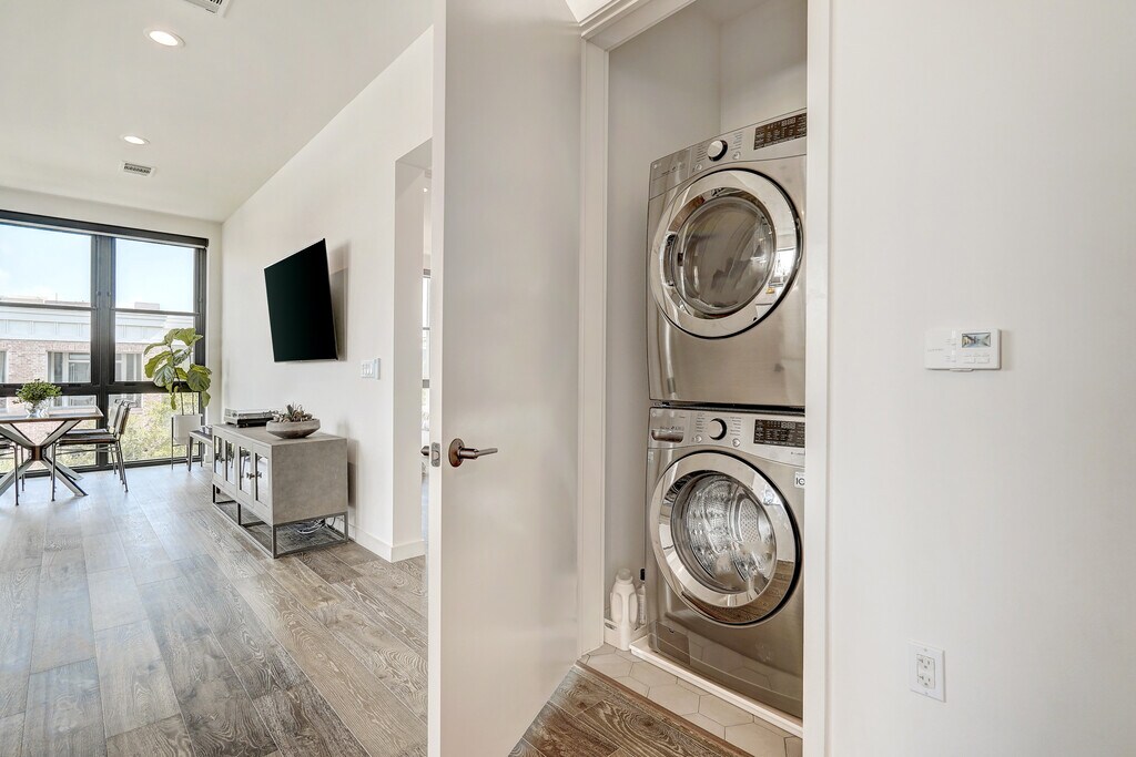 1B/1Ba in 2/2 Fully-Furnished, Pro-Designed Luxury East Austin/Downtown Condo Ready to live somewhere you love? A place that *feels* like home? I've been lucky enough to experience this. Now, I want to share it with you. ASK FOR VIDEO WALKTHROUGH! Details: - 1B/1Ba in 2b/2ba fully furnished, professionally-designed, midcentury-modern condo. All premium everything. - Super private layout. No touching rooms. Huge private bathroom + walk-in closet. (See picture 5) - Ideal location on the edge of East Austin and downtown, 3 blocks from Whole Foods, Target, E 6th St bars, coffee shops, and world-famous Franklin’s BBQ. Walkscore: 92. - Work From Home (WFH) Dream: Lightning fast FiOS internet, desk in room, standing desk rig, coworking space with private conference rooms - Located at The Tyndall, a 2018 premier condo building, with a rooftop pool, free-weight gym, indoor/outdoor coworking space, outdoor grills and kitchens + other amenities (see photos) - Fully outfitted kitchen with top-end gear, ready for any level of home-chef (Yep, All-Clad pans) - Get the best sleep of your life on luxury mattress, down pillows & comforter + blackout curtains - Washer/dryer in unit. - Garage parking available for extra fee. Secure bike room in garage - Smart home (lighting, thermostat, TV, etc.) - No annual commitment. Ideal for relocating/traveling professionals. - Utilities included + $199 cleaning fee on move out. - Good vibes only AVAILABLE IMMEDIATELY ***Ready to Come Home? (Next Steps):*** Please email or text the following info: 1. Name 2. Profession 3. Social networks profiles ( FB, IG, etc.) 4. Any special accommodations/requests? 5. Desired move-in/move-out dates. Look forward to hearing from you!